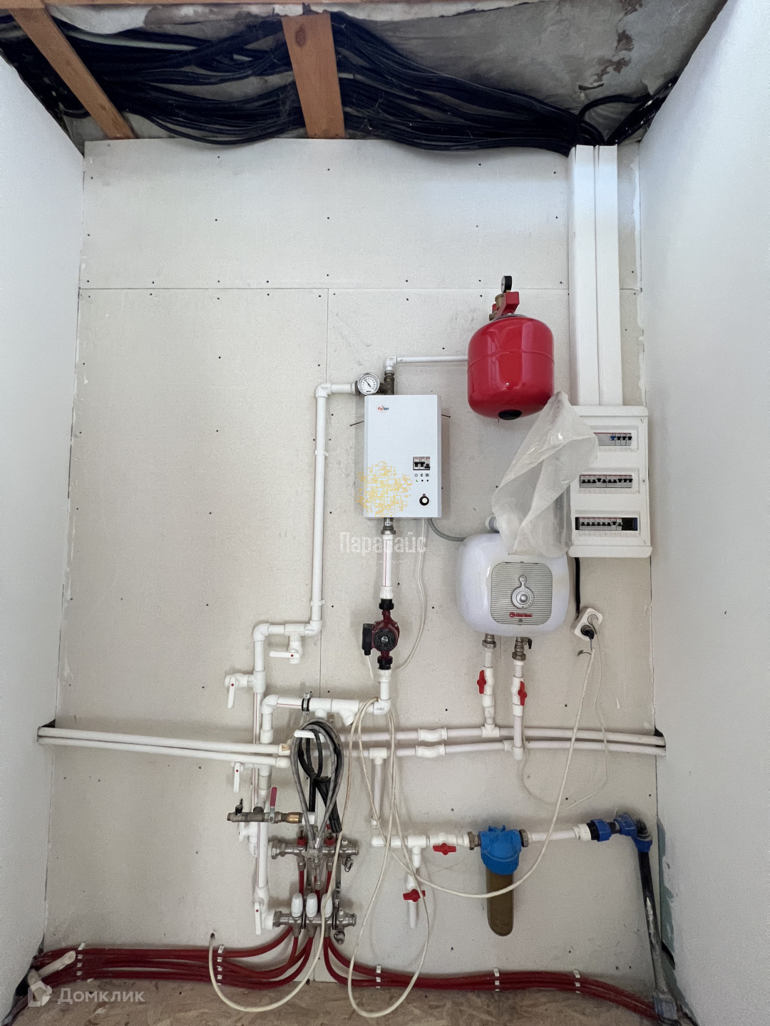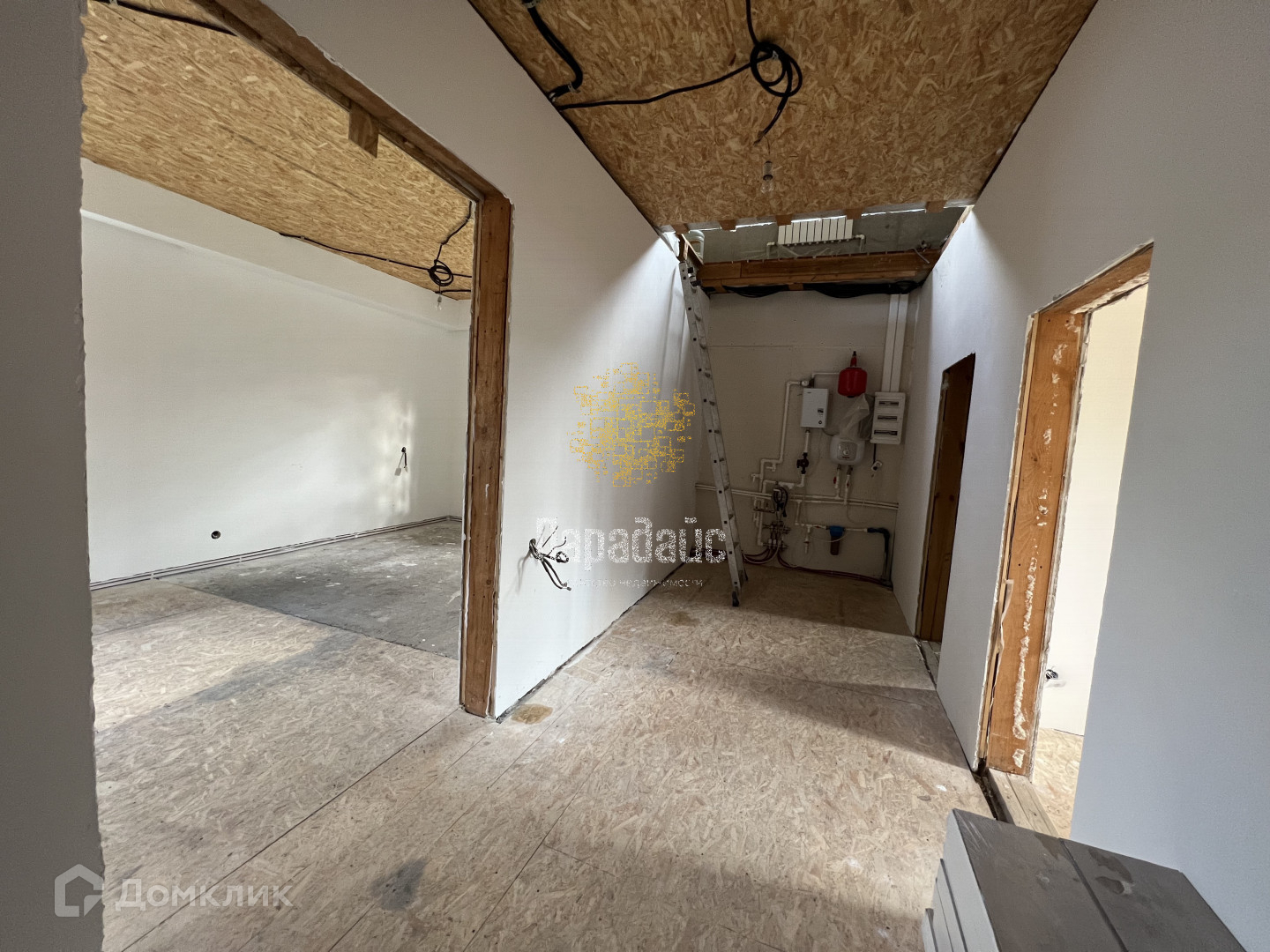 Коммуникации: В доме сделан теплый пол. Так же установлены батареи во всем доме на двух этажах. Фундамент ленточный. Свет проведен, имеется щиток, электричество - 15 кВт, отопление - электрокотёл, водоснабжение - индивидуальная скважина, канализация - переливные кольца. Проведено оптоволокно для интернета. В поселке планируется подведение газа.