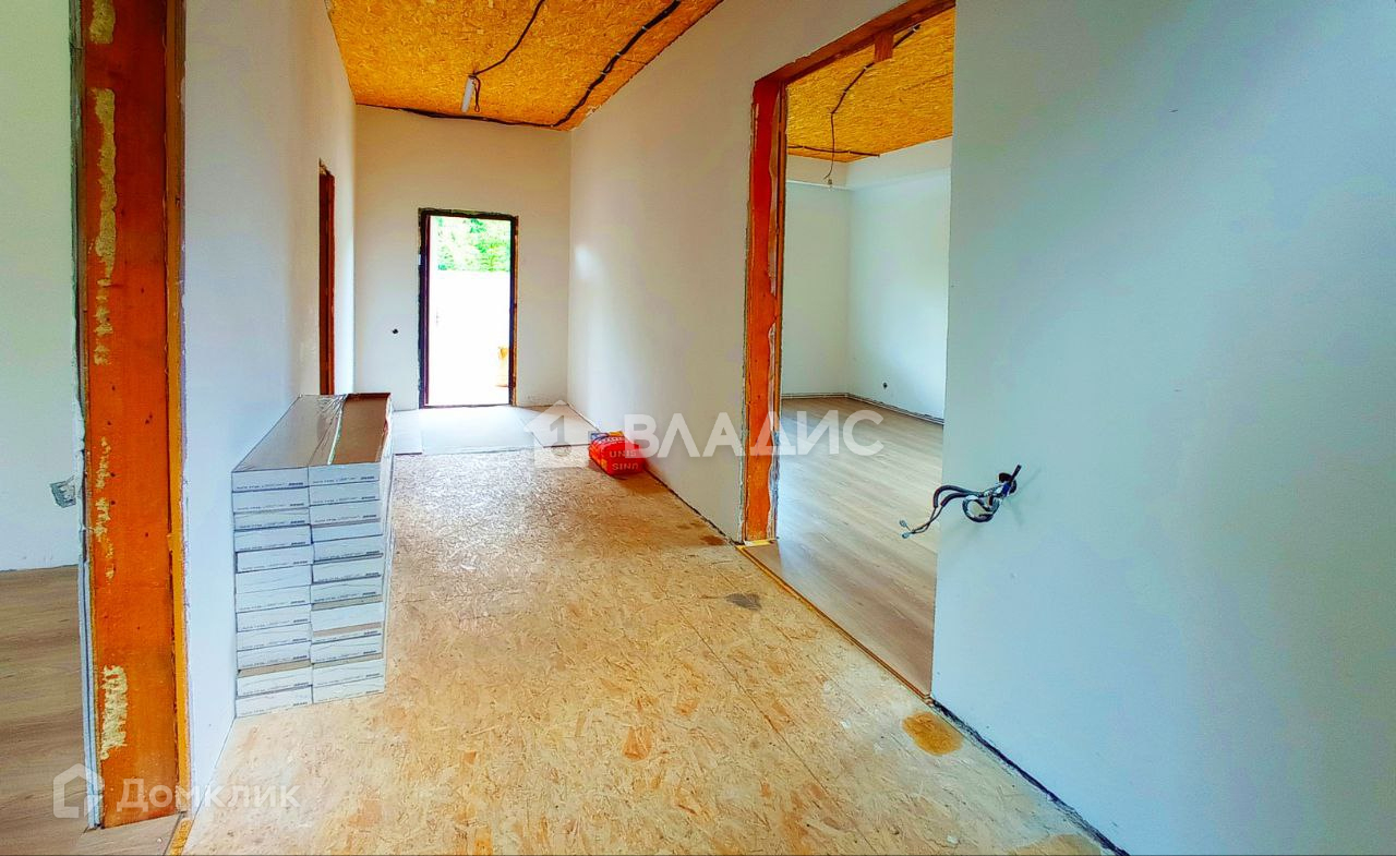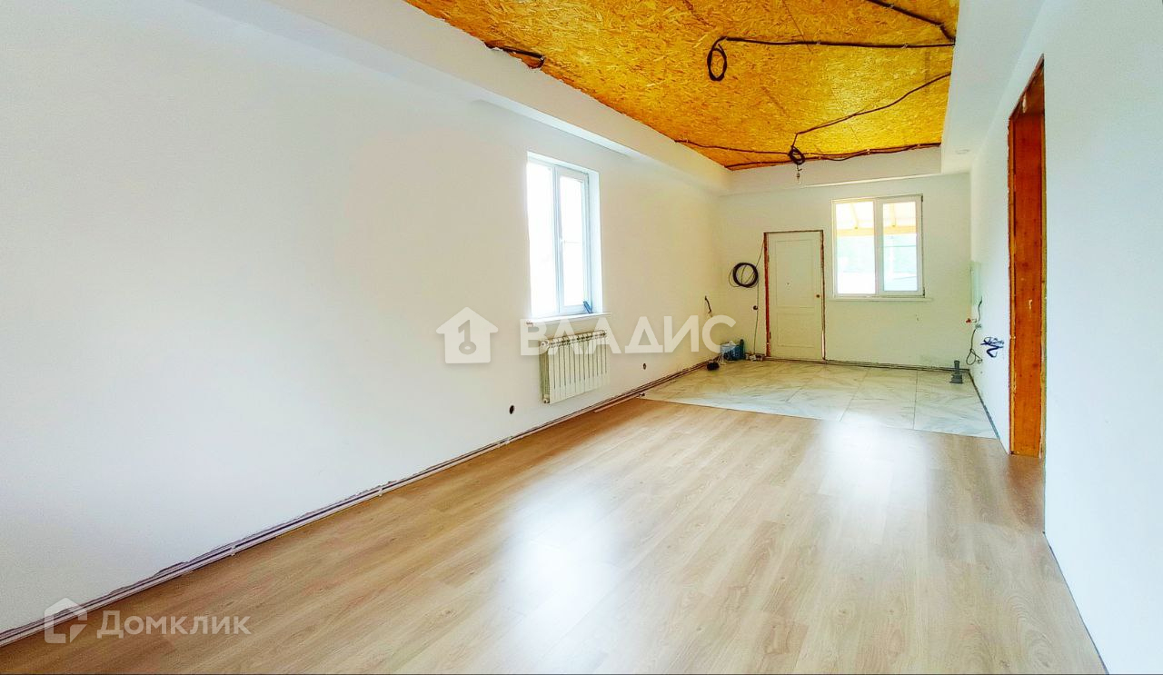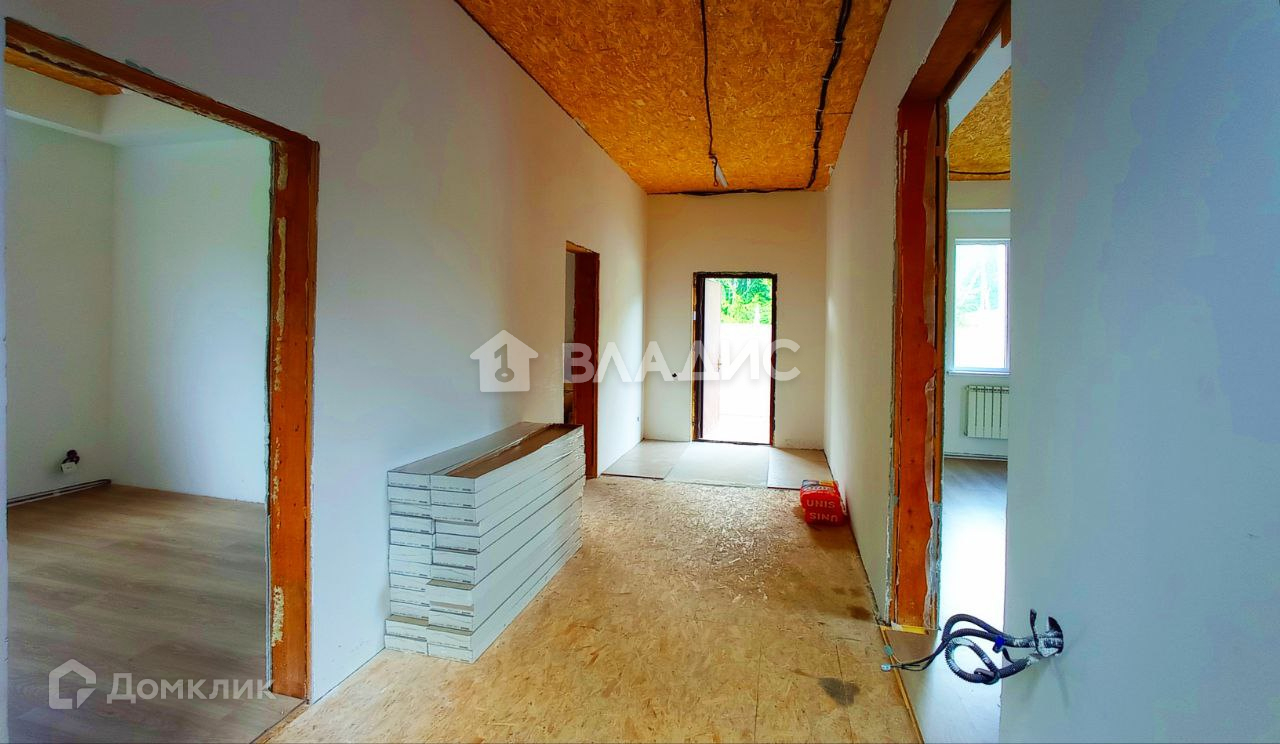 1-й этаж – большой холл 2,5*8 м, кухня-гостиная, санузел, 2 комнаты , 2-й этаж – общее пространство, под свободную планировку. 1-й этаж пол ламинат, керамогранит в кухонной зоне и входная группа, отопление от электрокотла, 1-й этаж - водяной теплый пол + радиаторы, 2-й этаж - радиаторы, стены - гипсокартон под покраску или обои, все коммуникации в дом заведены, электрика 15 кВт, выполнена скрытым способом. Вода питьевая из скважины, делали анализ, канализация – септик. Интернет – оптоволокно.