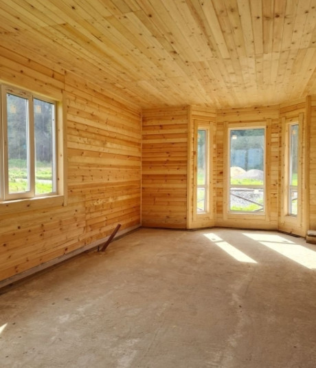 Дом построен из газобетона на бетонной плите, внутренняя отделка выполнена из вагонки, фасад также отделан окрашенной вагонкой, установлены качественные стеклопакеты.