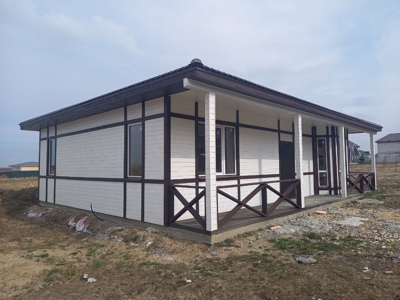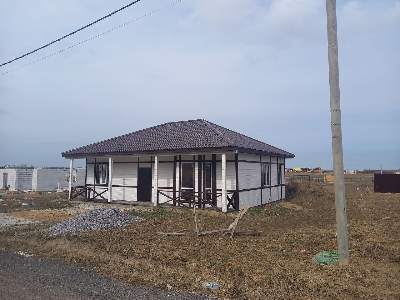 Продается новый дом в 40 минутах от метро пр.Ветеранов. в новом активно застраивающемся коттеджном поселке. Дороги сделаны, отсыпаны асфальтной крошкой. Электричество проведено 15кВт.