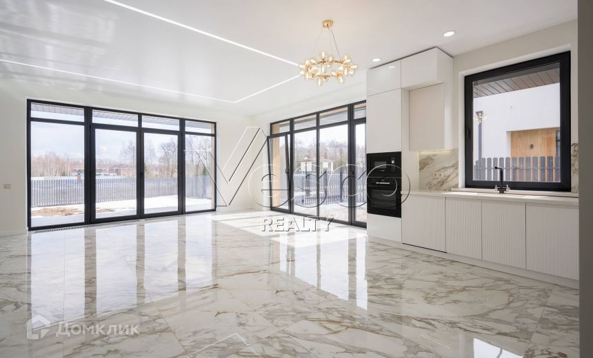 Особенности дома: панорамное остекление, функциональная планировка, мастер-блок с собственной гардеробной и ванной комнатой, модная кухня, современные материалы и технологии, мебель и сантехника премиальных брендов, поселок бизнес-класса.