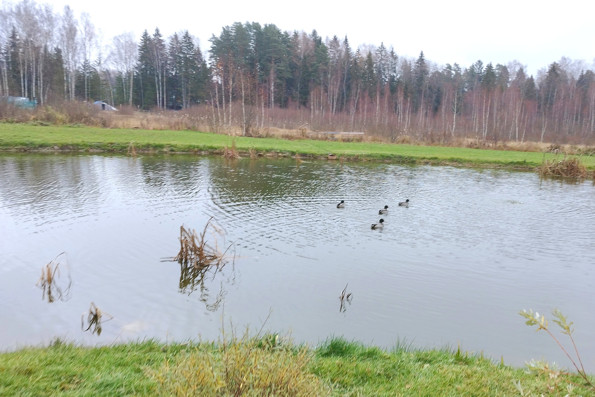 в водоеме даже водится рыба: окуни, караси, щуки.