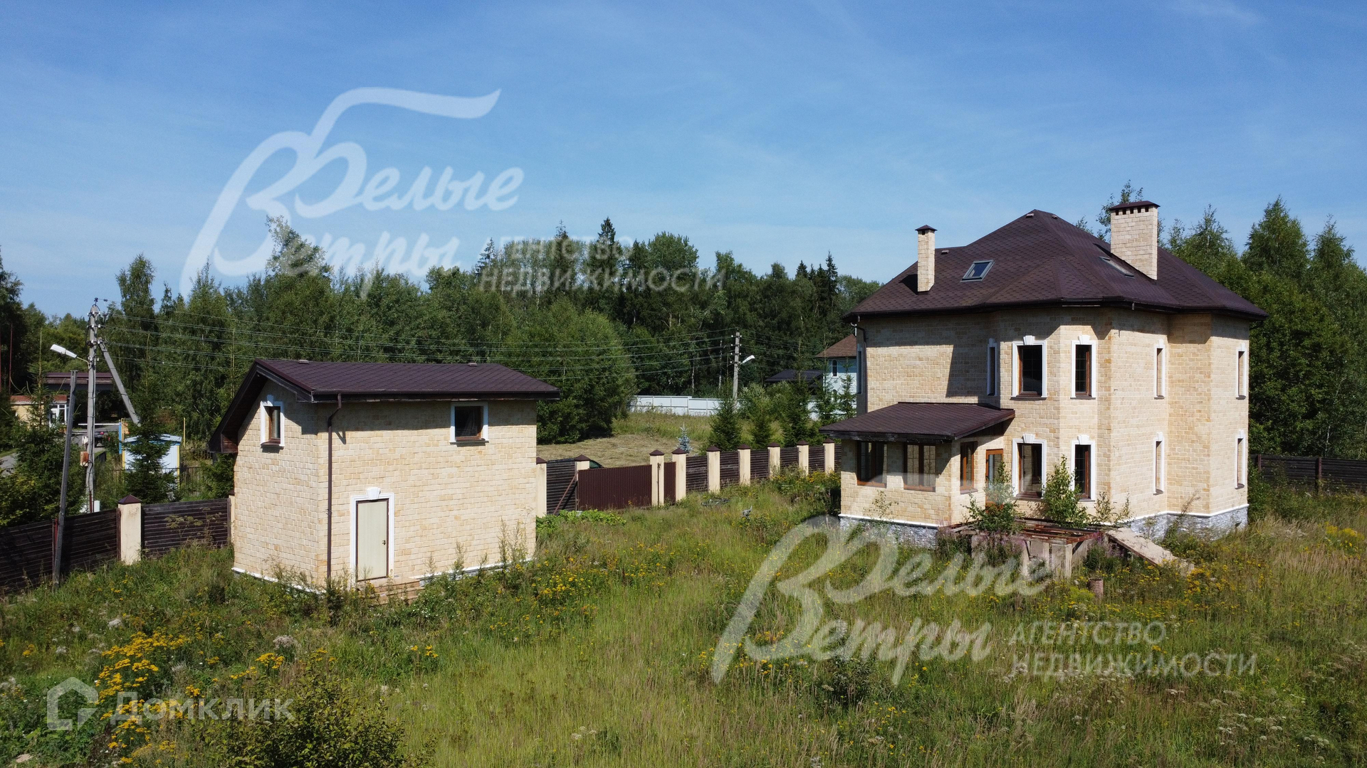 Красивый дом под отделку на большом участке, граничащем с природным озером. На территории также гараж с квартирой для персонала. Центральные коммуникации.