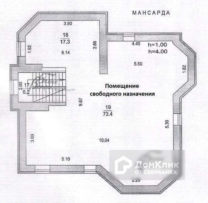 3-ий этаж: мансарда: помещение свободного назначения 91 кв.м.