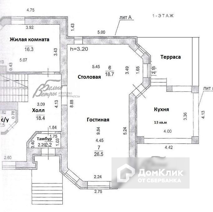 1-ый этаж: тамбур 3 кв.м, холл 18 кв.м, с/узел, гостиная 27 кв.м, столовая 19 кв.м, кухня 13 кв.м с выходом на терассу, жилая комната 16 кв.м.