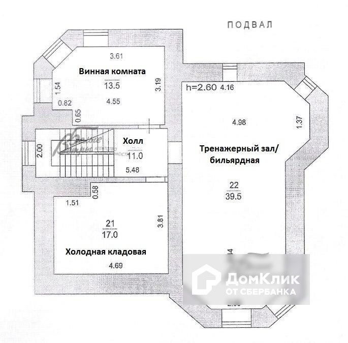 Цокольный этаж: винная комната 13.5 кв.м, холодная кладовая 17 кв.м, тренажерный зал или подсобное помещение 40 кв.м.