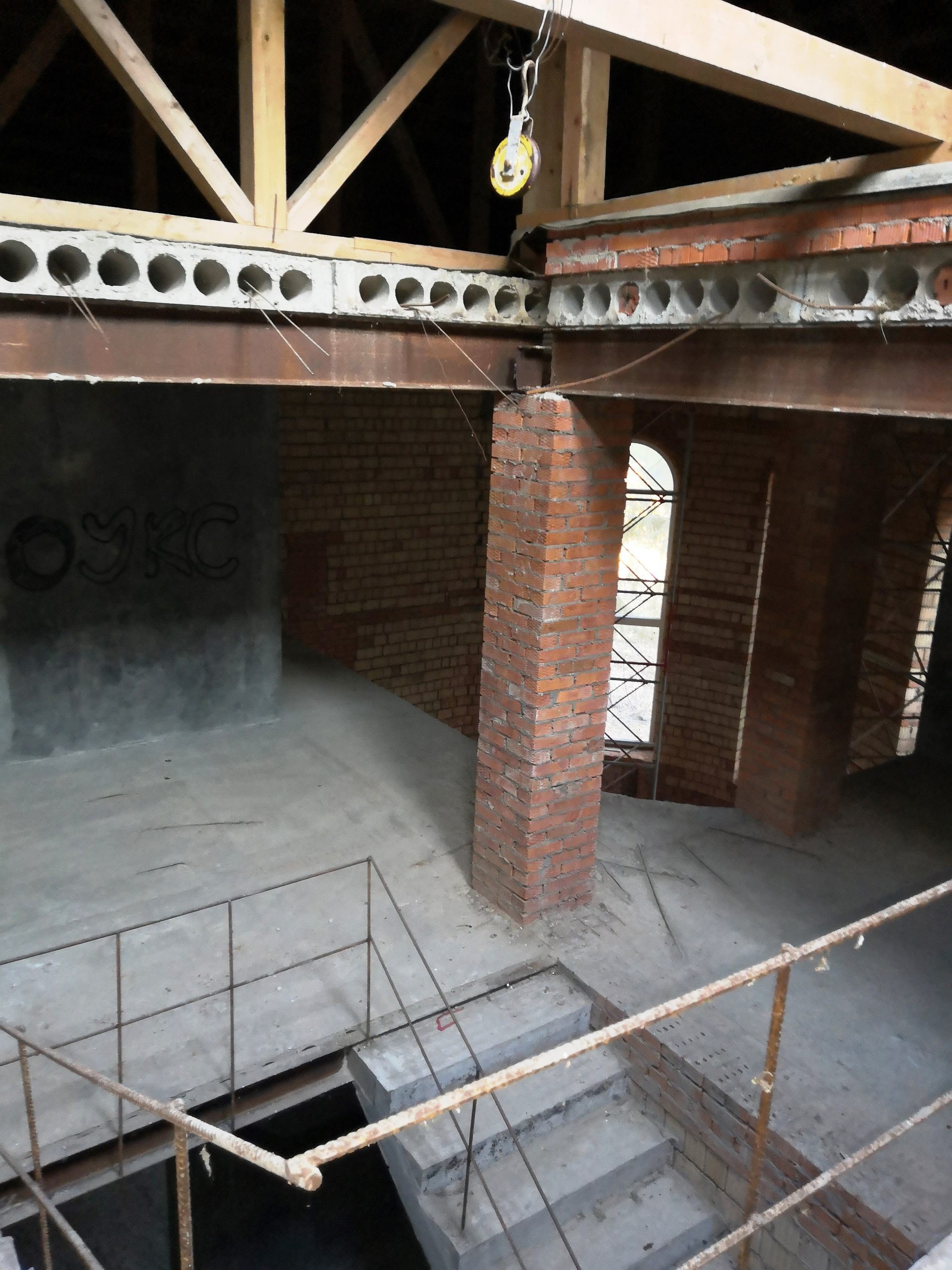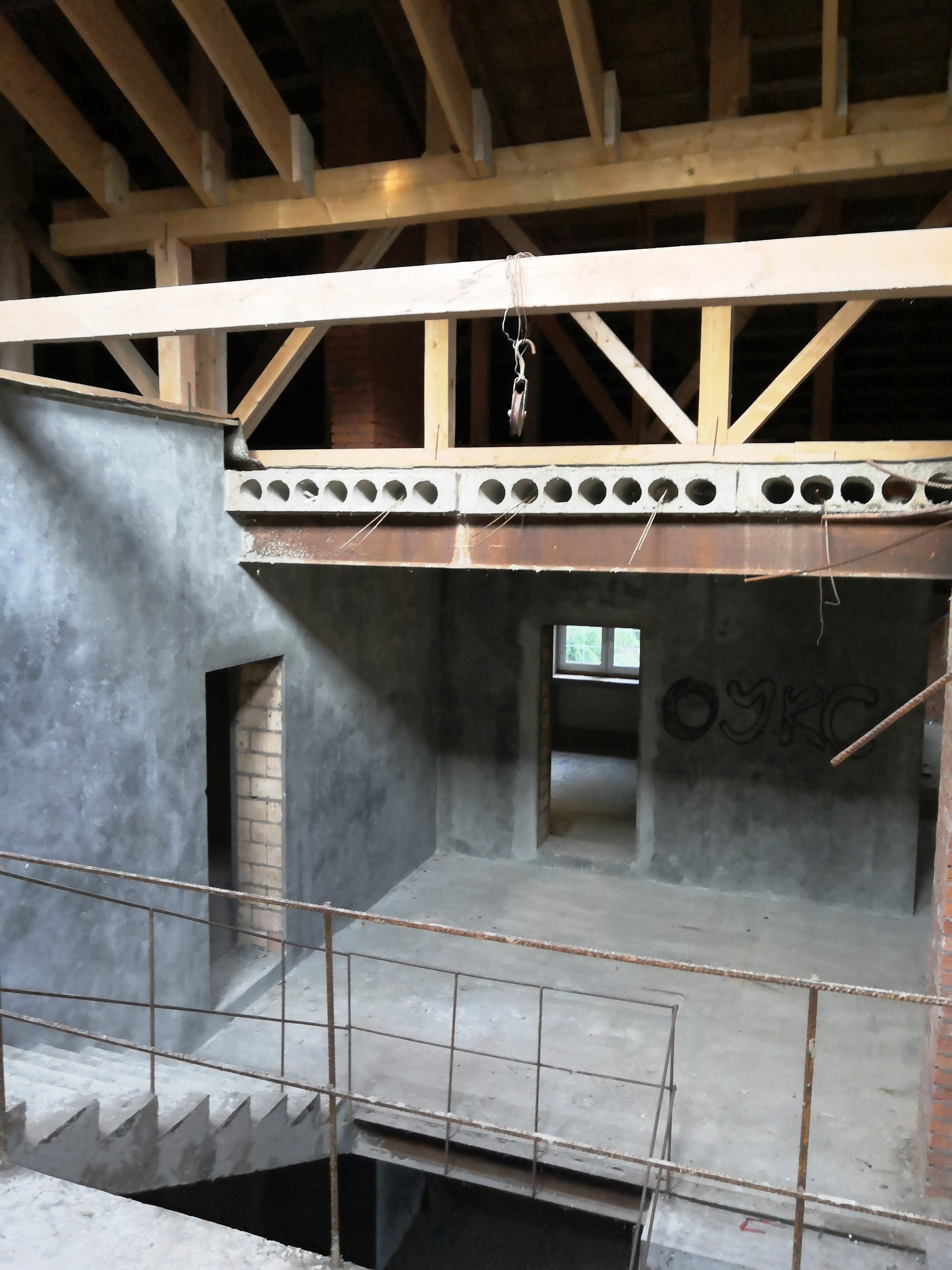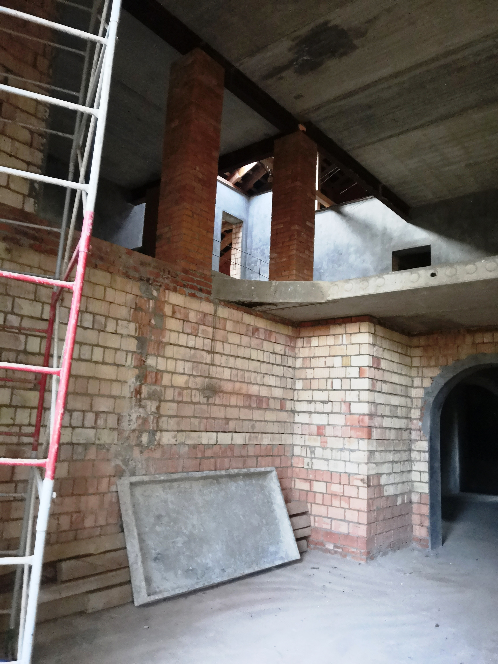 Вы видите на фото, что материал наружных и внутренних стен- строительный голицинский кирпич, слишком дорогой и непопулярный для тех, кто экономит на стройке. Перекрытия железобетонные.