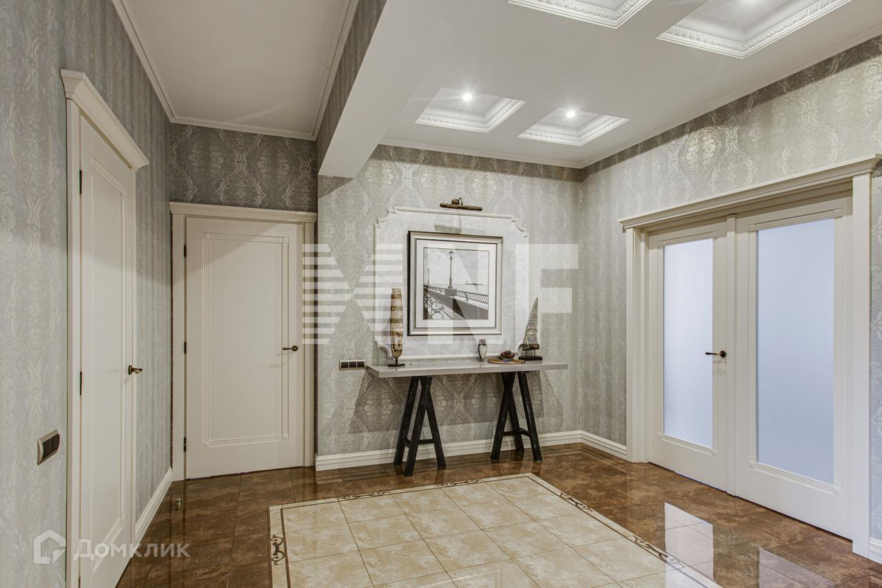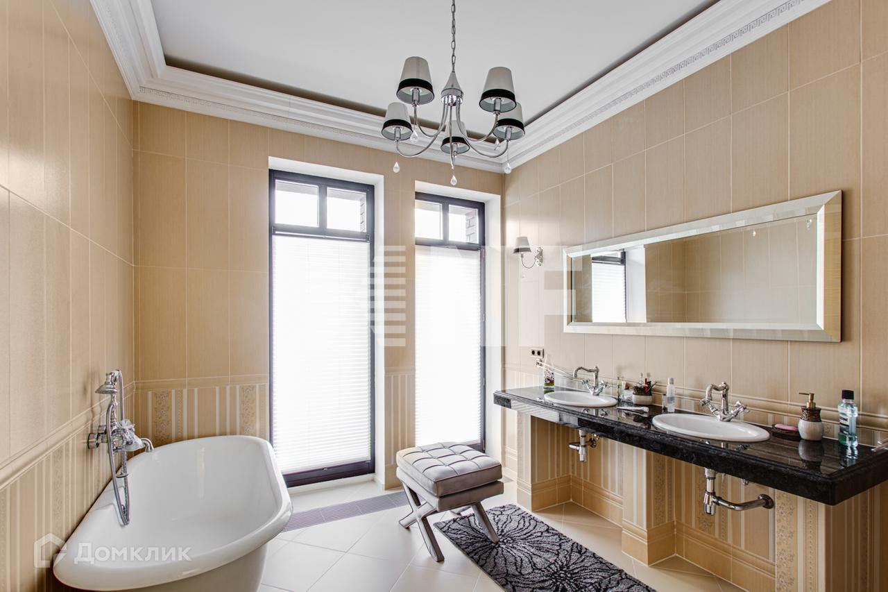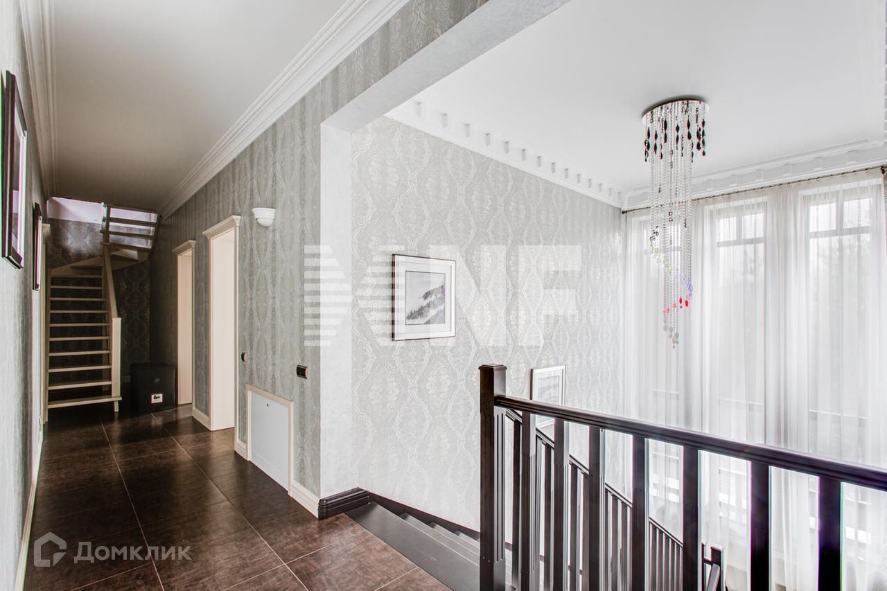 Дизайнерская отделка преимущественно в светлых и пастельных тонах с использованием дорогих и натуральных материалов, презентующих экстерьер во всем его великолепии. Стены: американские бумажные (экологически чистые) обои, венецианская штукатурка, произведены работы по художественной и декоративной отделке стен и потолков из натурального гипса и карнизов. Пол: испанский и итальянский керамогранит (с водяным подогревом), натуральный штучный дубовый паркет с художественными элементами, крыльцо - натуральный гранит с термообработкой для противоскольжения, террасы дома выложены террасной доской (Deking). Широкий лестничный марш из массива дерева ценных пород с двухсветным освещением, с деревянными перилами, ступени из МДФ с эмалью, ширина 1,2 м. Подвесные многоуровневые фигурные потолки с кессонами (в кабинете, в холле и столовой) и карнизами. Сантехника - Италия, Германия марок Devon&Devon,Gessi,Hans Grohe, Joop!, Jacuzzi, Huрpe и т.д.), мойка - литой мрамор. В доме все разведено "под ключ", вся арматура, разводка воды и отопления выполнены TECE (Германия), TM (Италия). Радиаторы Kermi, внутрипольные конвекторы (где остекление от пола). Электрика ""Lengrand"" дизайнерской серии. Двери межкомнатные из массива дерева ценных пород ручной работы с покраской высотой 2,15 м. Подоконники из натурального полированного гранита. По периметру дома выполнена декоративная фасадная подсветка (Wever & Dukre производство Бельгия). Люстра в камином зале 800 тыс. руб., по прайсу в единственном экземпляре. Разведены выводы под технику и динамики в каминном зале и в SPA-зоне. Сауна с печкой "Harvia", паровая баня отделана мозаикой из стекла.