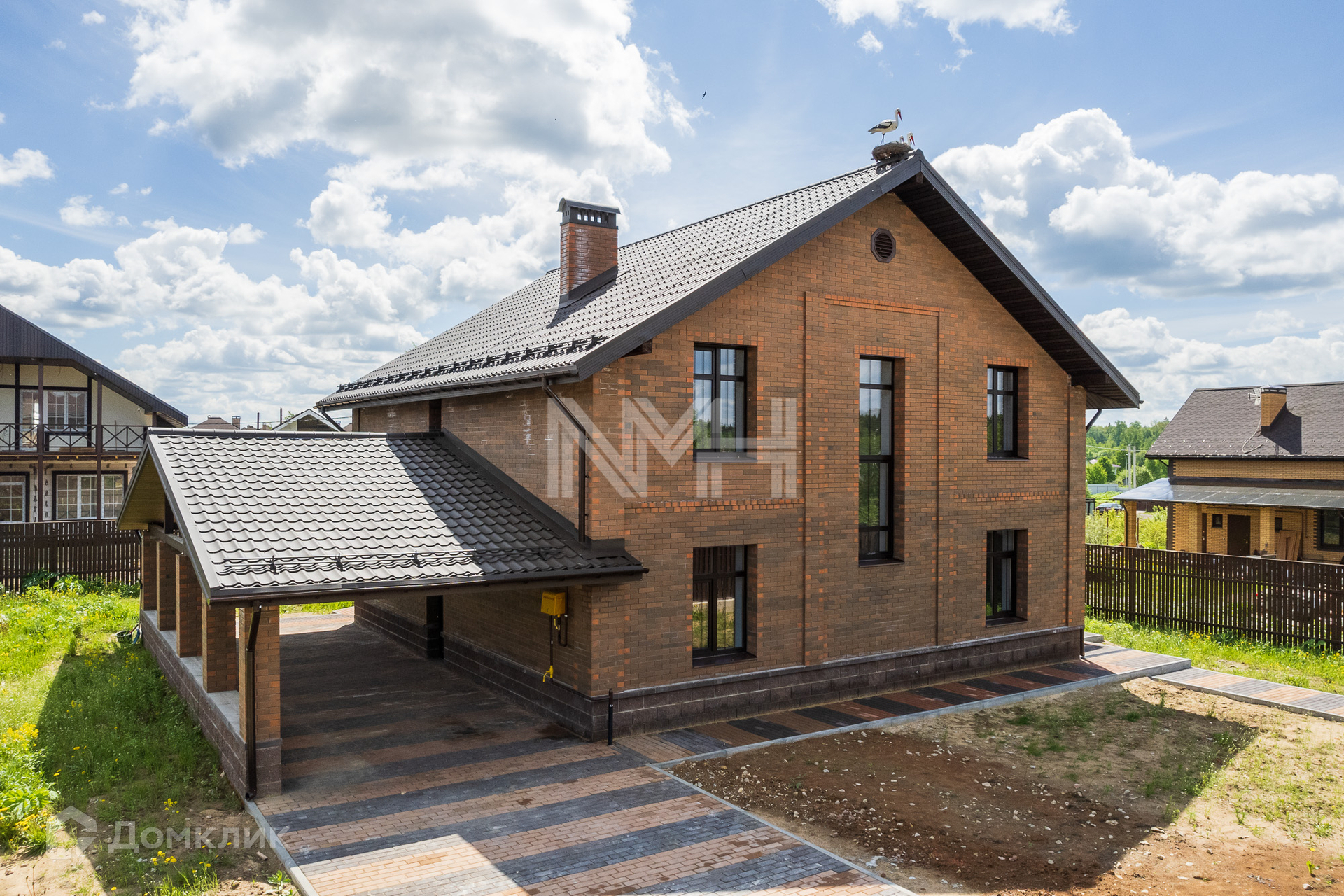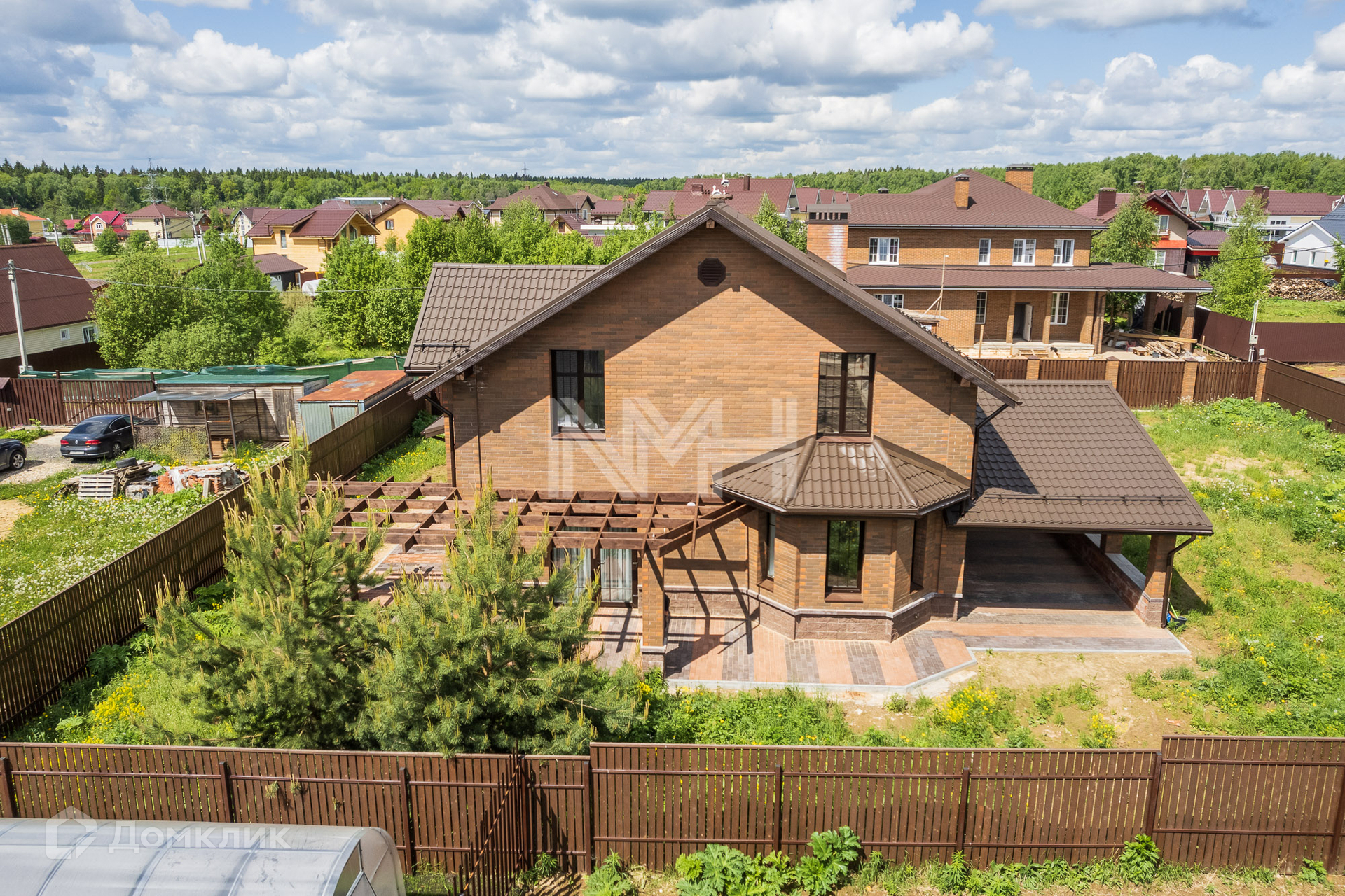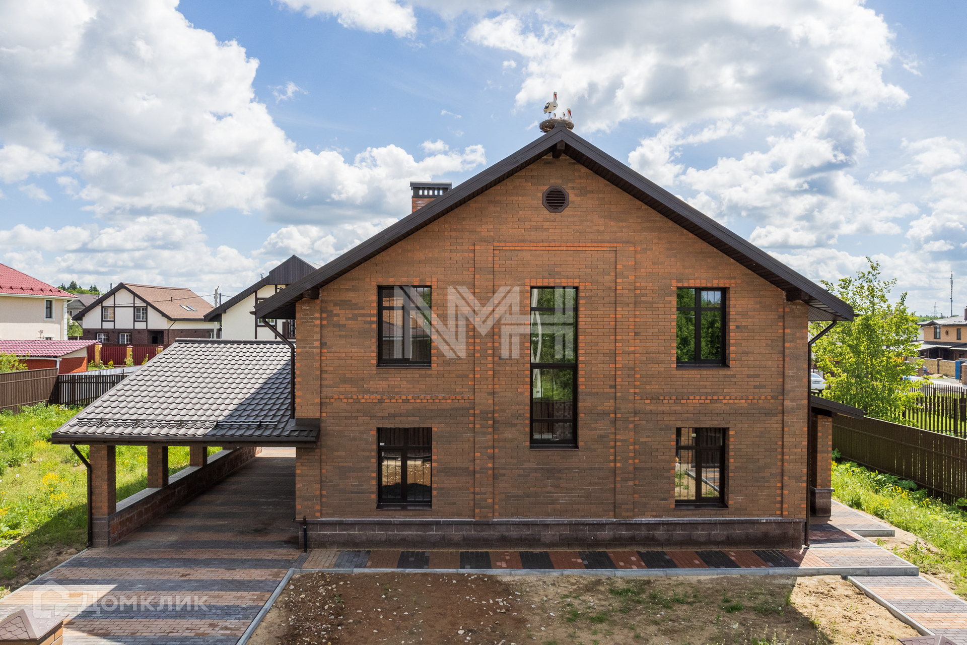 В доме выполнено панорамное остекление, выход на террасу из зоны гостиной, теплый пол по 1 этажу, крытая парковка на 2 автомобиля.