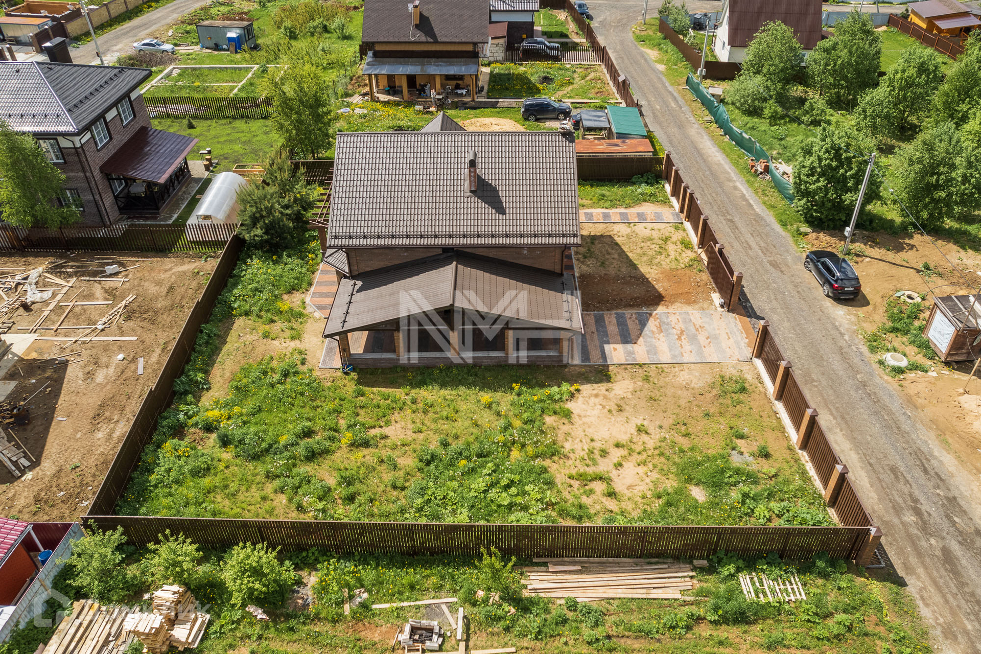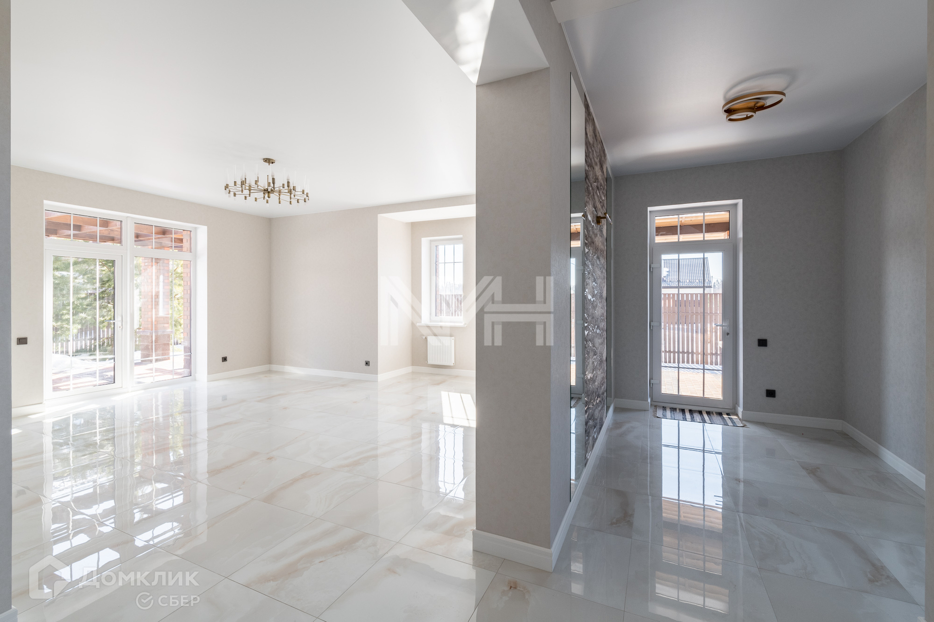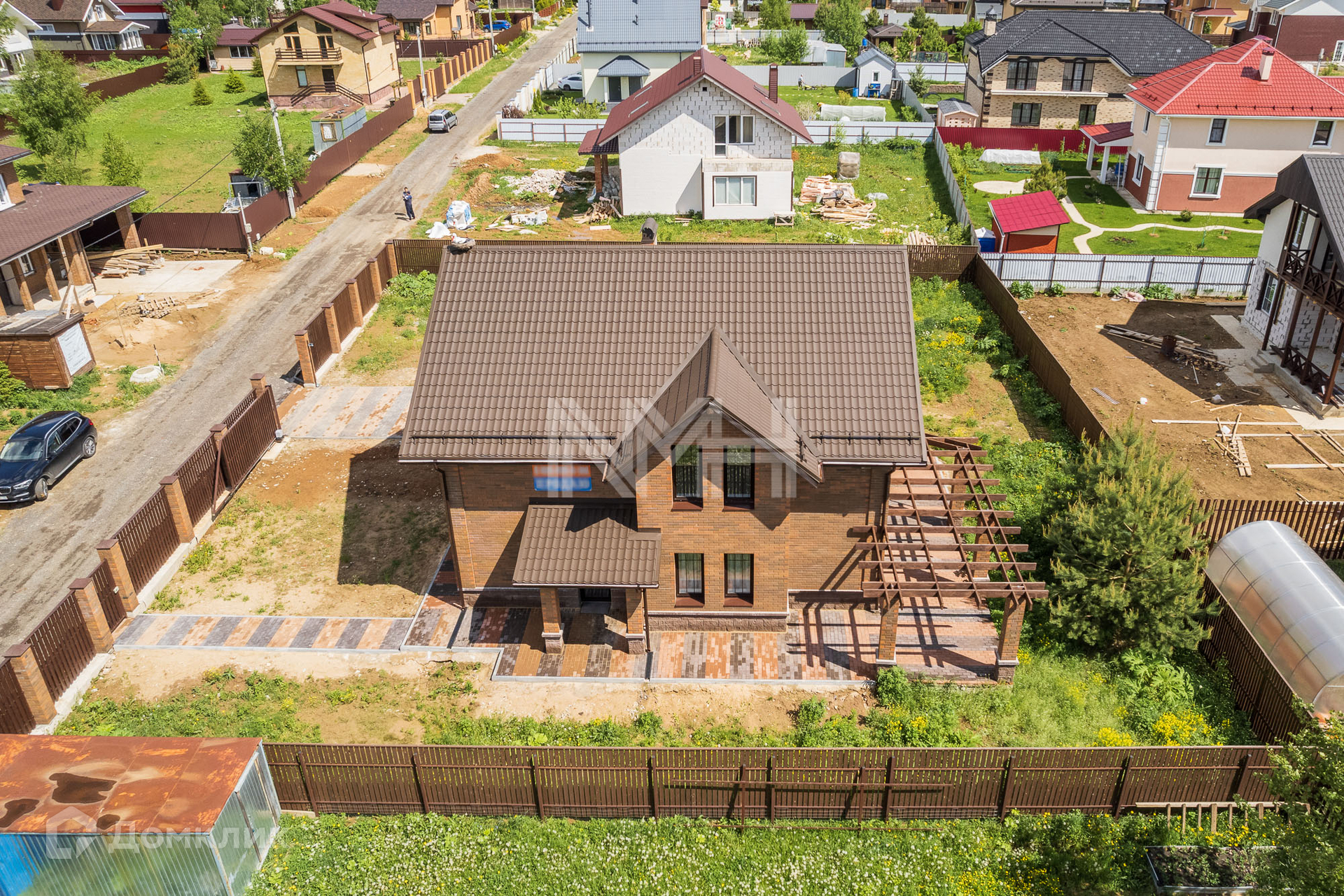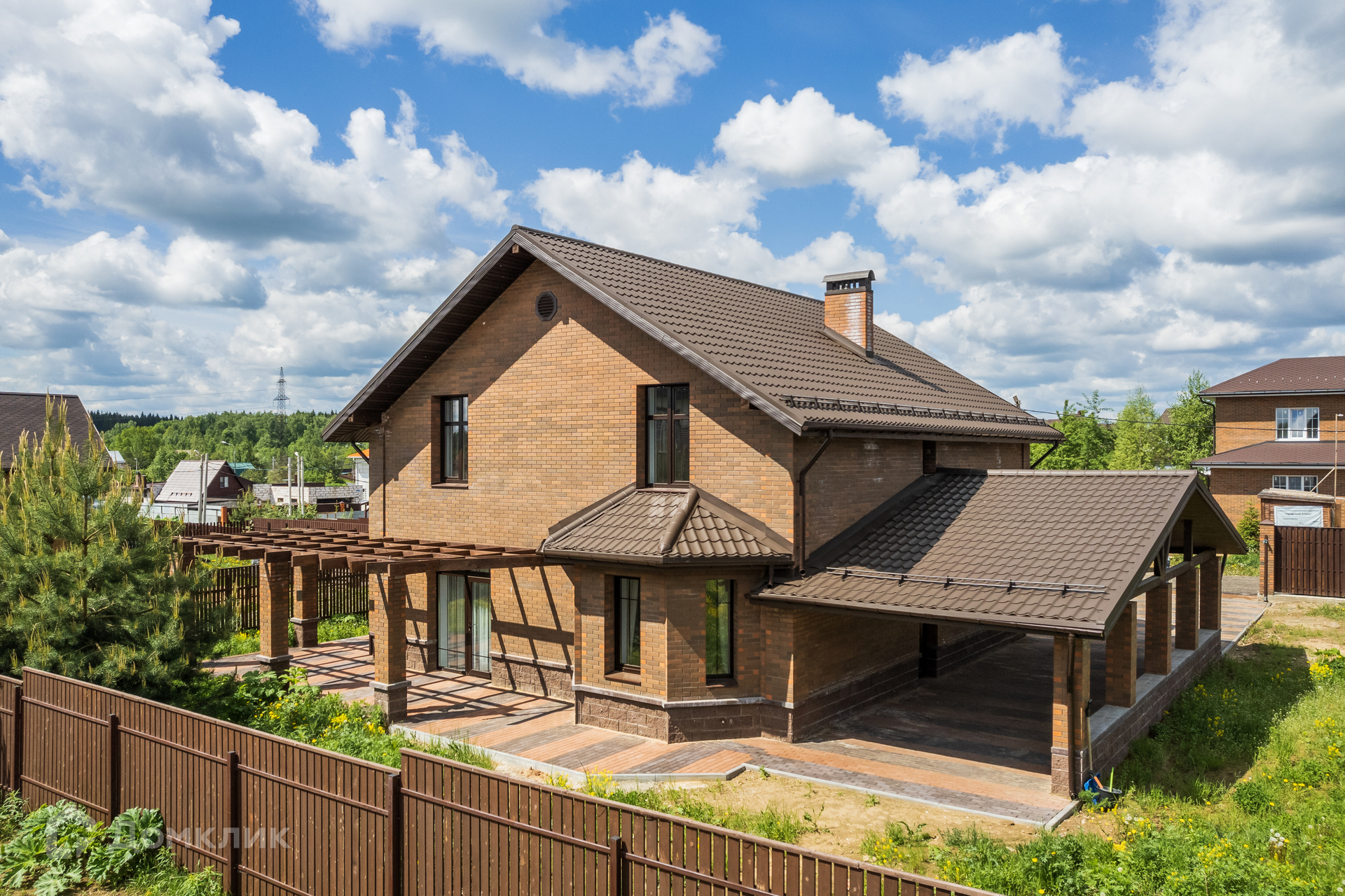 В доме выполнено панорамное остекление, выход на террасу из зоны гостиной, теплый пол по 1 этажу, крытая парковка на 2 автомобиля.