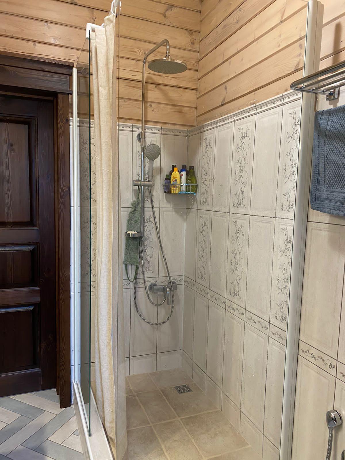 встроенная душевая кабина с сиденьем, санузел – унитаз,