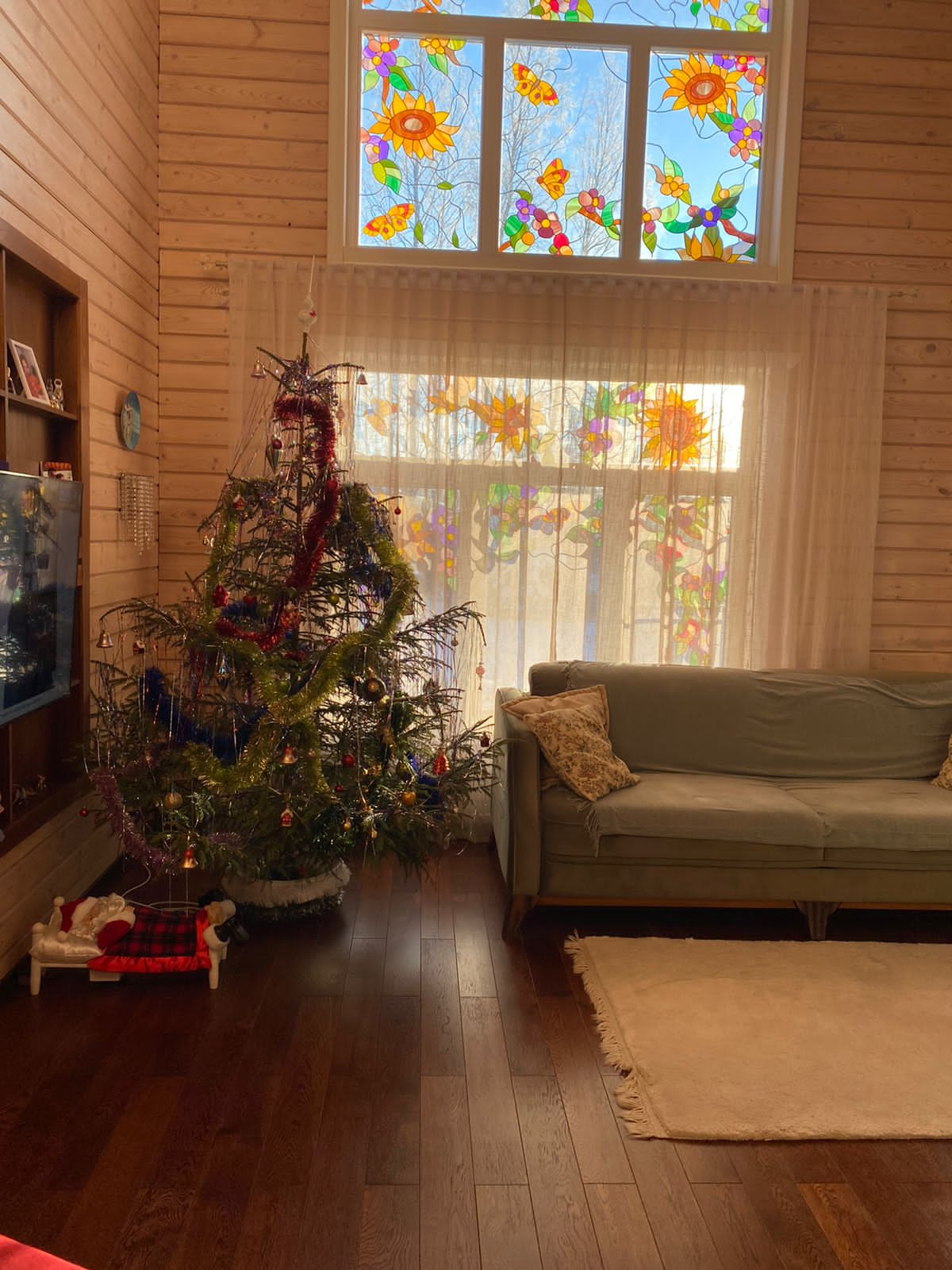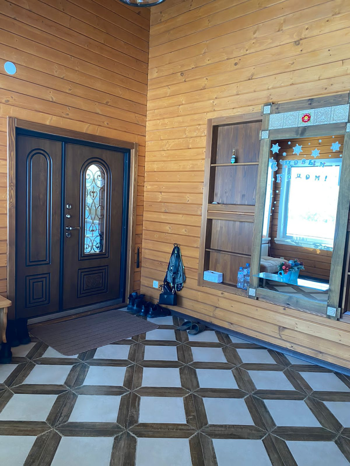 ламинированные с витражом, пол – плитка керамическая,