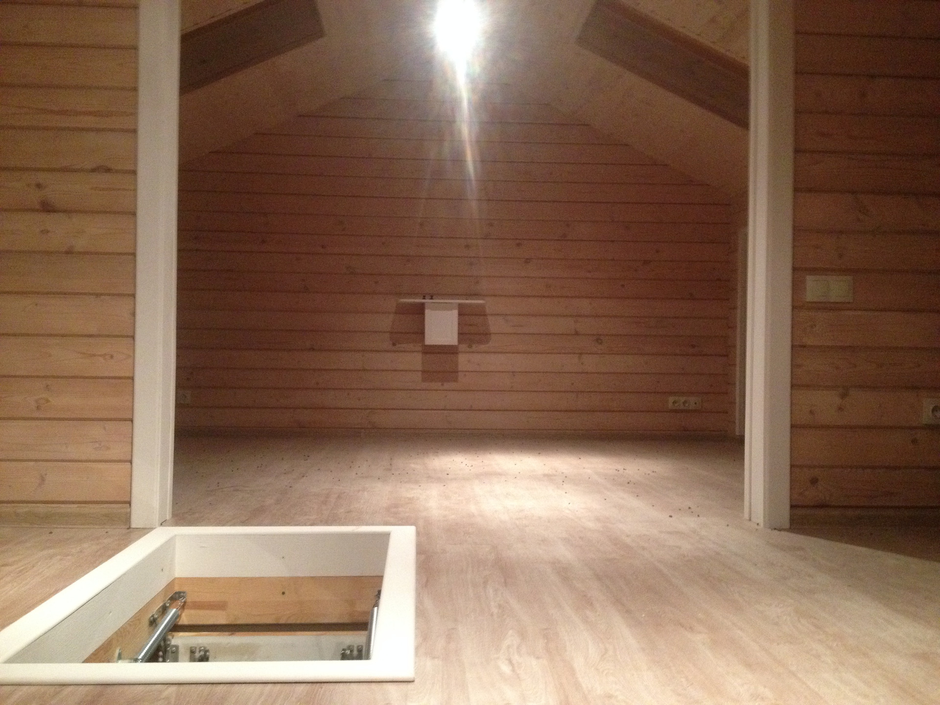 Мансардный этаж: выдвижная лестница, два мансардных окна,