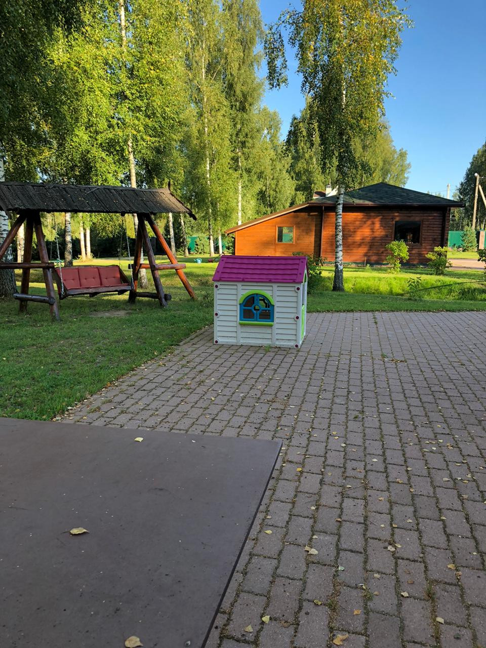 пешеходные дорожки выложены тротуарной плиткой, открытая