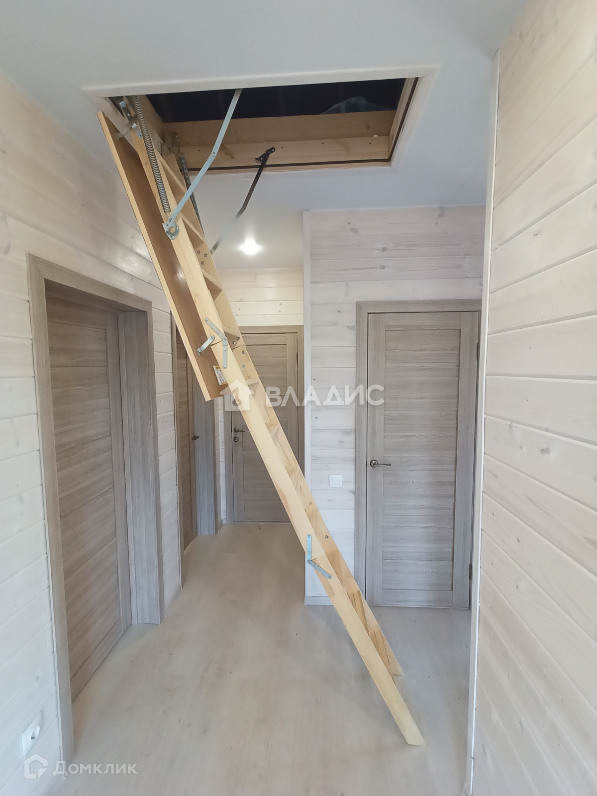 В коридоре раскладная лестница на второй этаж где возможно устроить жилое пространство 35м2.