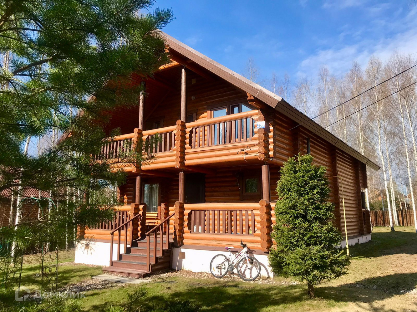 Дом двухэтажный, из бревна, 220 кв.м. Просторный холл, кухня-гостиная с выходом на террасу, 4 спальни, 2 санузла, бойлерная, большой балкон с выходом из спален.
