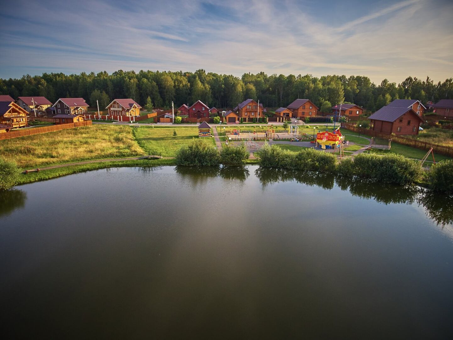 Инфраструктура: 9 постов охраны, видеонаблюдение, 3 большие детские площадки, ресторан, магазин, рыбалка, салон красоты, гостевые дома в аренду, аренда бани, храм, детский клуб, четыре чистейших озера, два песчаных пляжа только для жителей поселка, нетронутая природа, спортивные площадки с профессиональным покрытием: теннисный корт, футбол, баскетбол, волейбол, хоккейная коробка, зимний каток, велосипеды и катамараны, стадион, управляющая компания, прогулочные зоны, уличное освещение, асфальтированные дороги.