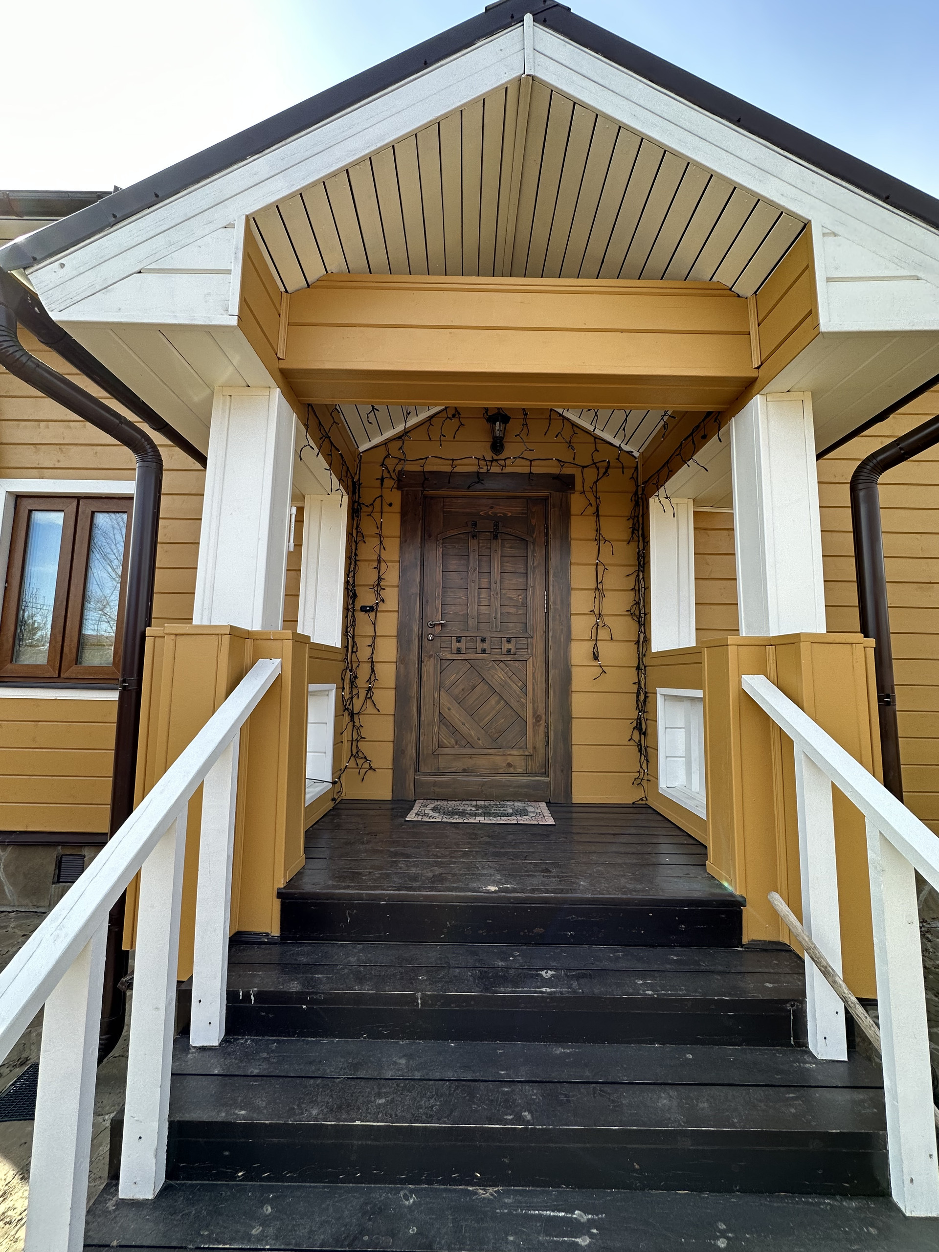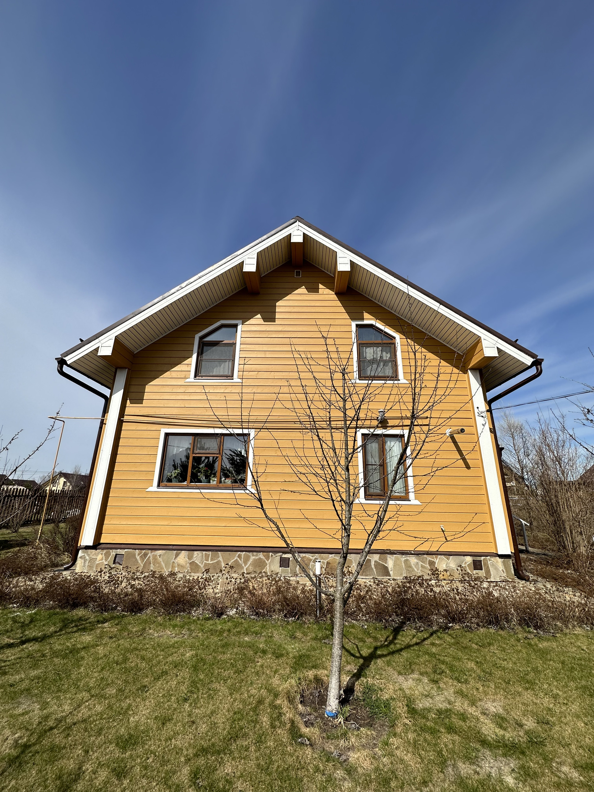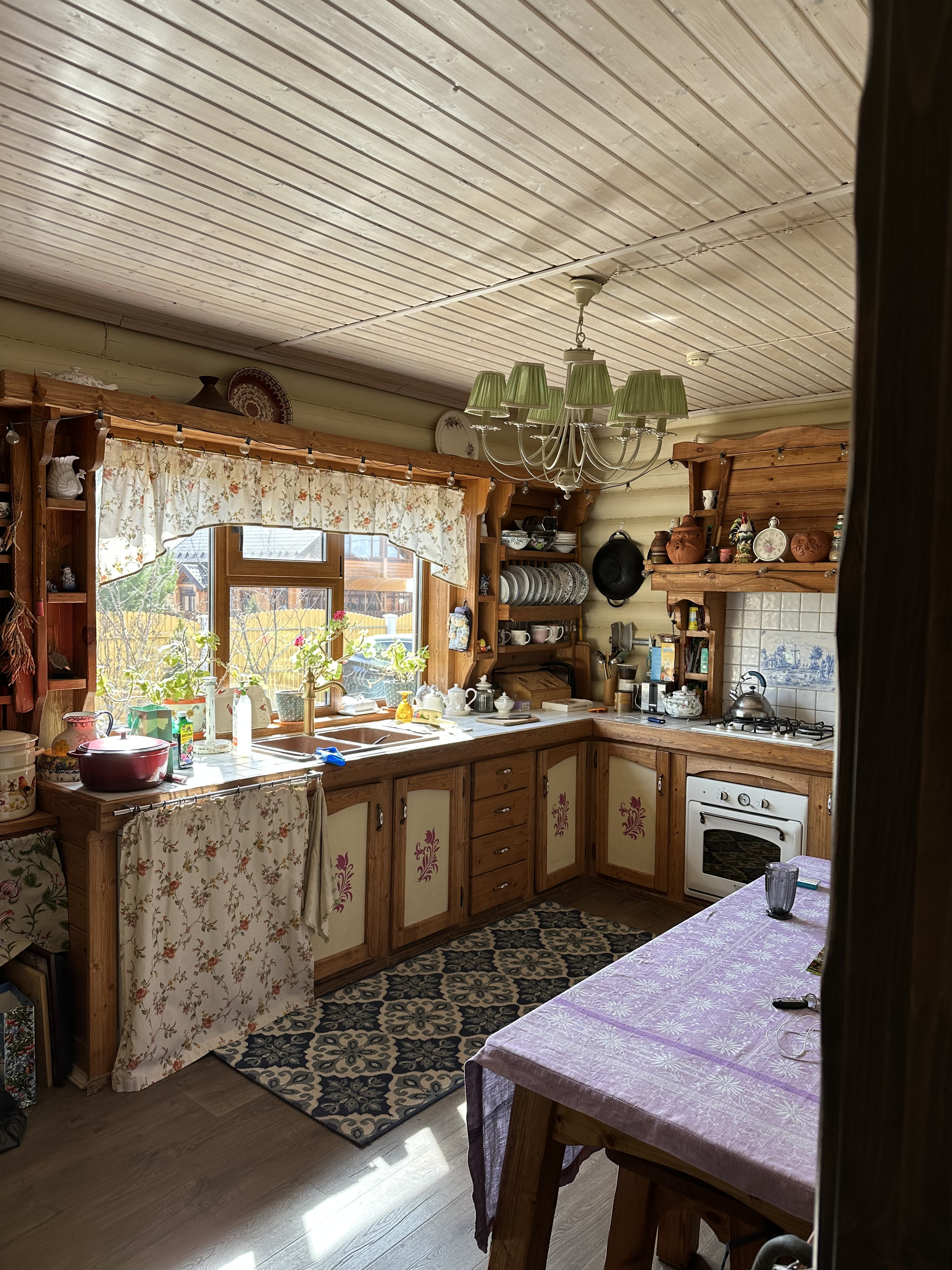 Дом в собственности с 12.2013 года. Дом из бревна, снаружи обшит имитацией бруса, внутри окрашен. Полы - ламинат под дуб. Электропроводка-ретро. Кухонная мебель, двери из натурального дерева ручной работы в стиле а ля рус. Система водоочистки, 2 санузла, камин в гостиной.