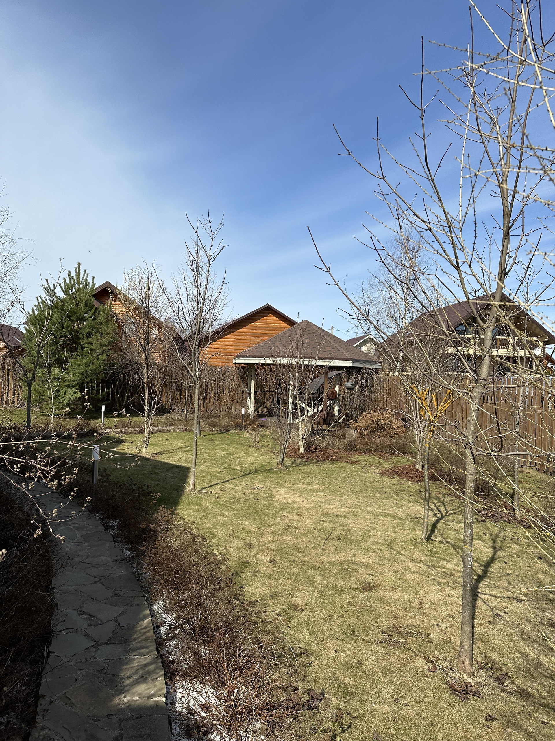Участок ровный, сухой (дренаж),ухоженный, ландшафтный дизайн, высокий. Плодовый сад (яблони, вишни, груши, смородина). На участке расположена беседка с мангалом, хозблок, все постройки выполнены в едином стиле.
