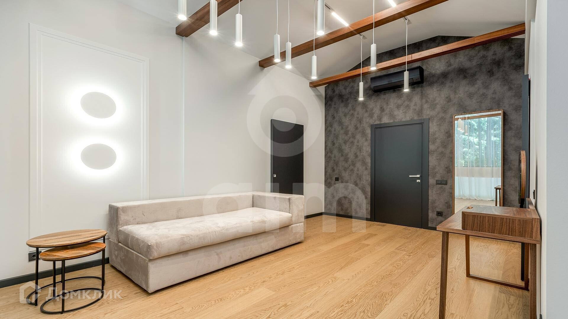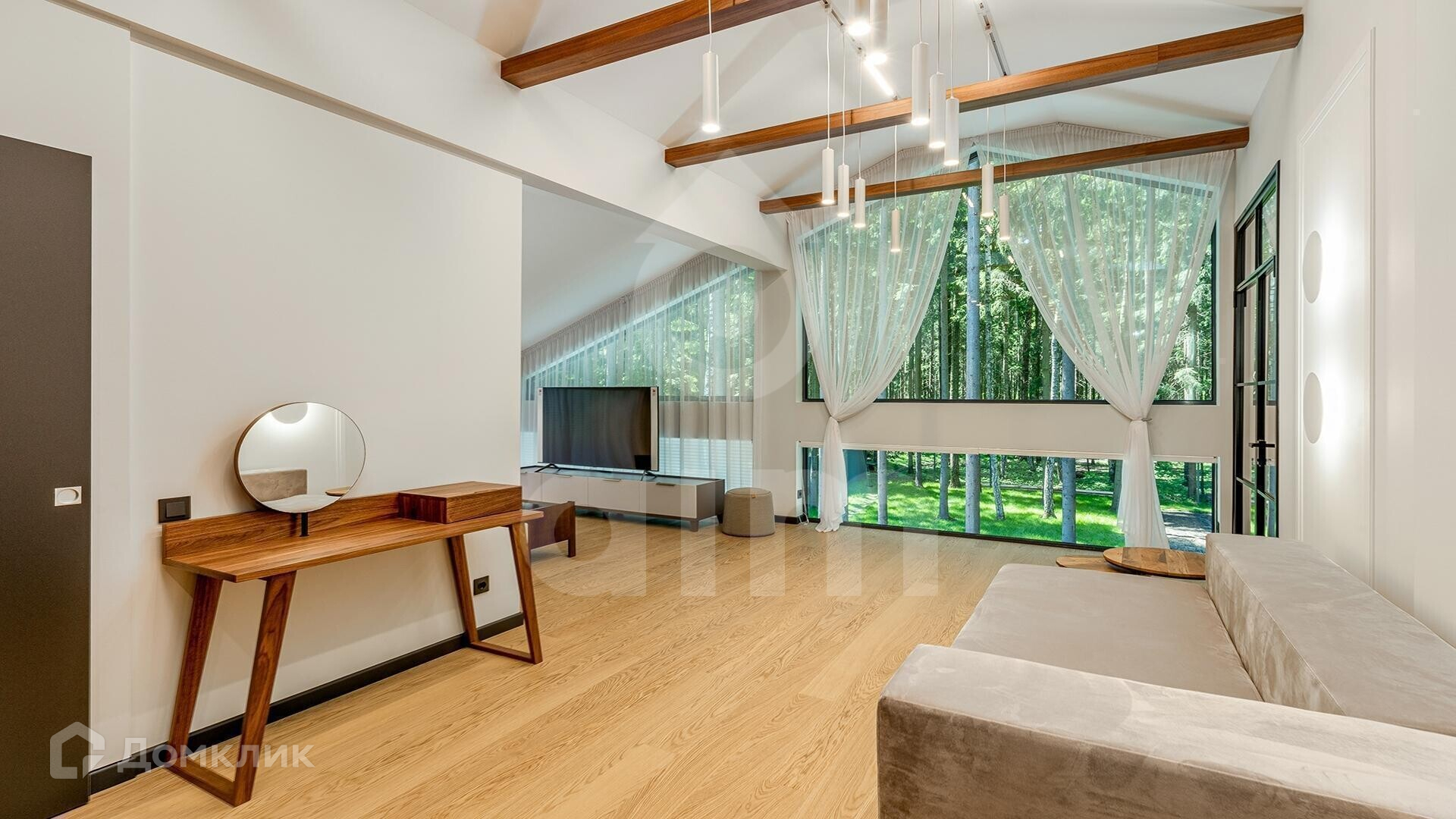 2 этаж: 3 спальни, 2 из которых - детских, с панорамным остеклением 17 и 21 м2, с которых предусмотрен выход на большой балкон + имеется третья, просторная мастер-спальня, с панорамным остеклением и видом на лес (высота потолков в верхней точке, порядка 5м.). Спальная зона, имеет свою гостиную. Общая площадь спальни 43 м2 + ванная комната 12 м2 и 2 гардеробных 8+5 м2., холл, общий сан/узел 10м.