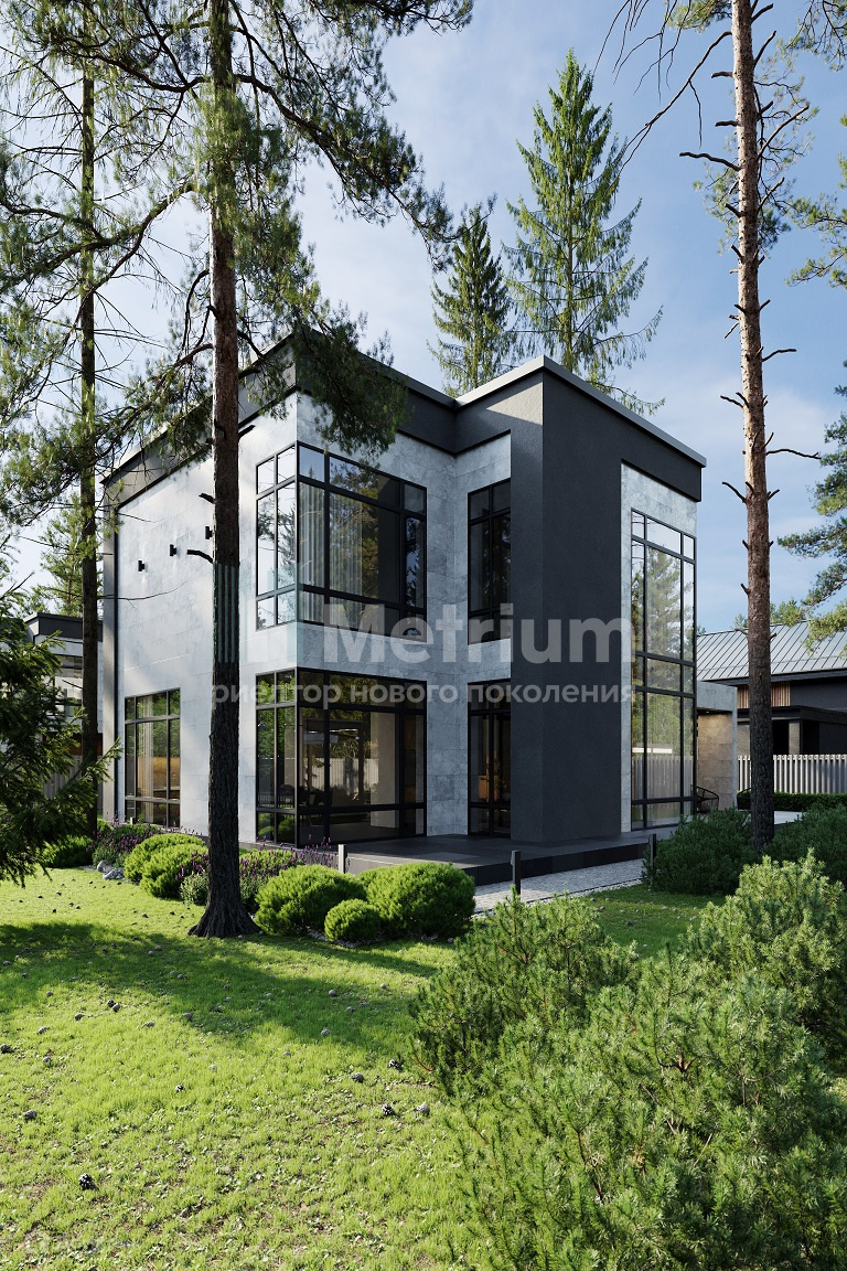 ID 13363 Дом в коттеджном поселке "Лесные зори" с панорамным остеклением и просторными террасами. Участок лесной с высокими соснами. Охраняемый поселок, асфальтированный проезд, детская и спортивная площадка. Развитая инфраструктура района: школы, детские сады, магазины, аптеки, строительный и продуктовый рынок, салоны красоты, рестораны, парки.