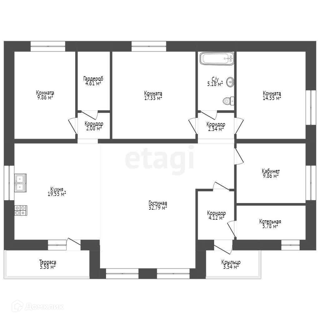 Планировка: 4 комнаты, 2 санузла, кладовка, кухня-гостиная 52 кв.м. с высотой потолков 6 м., есть терраса.