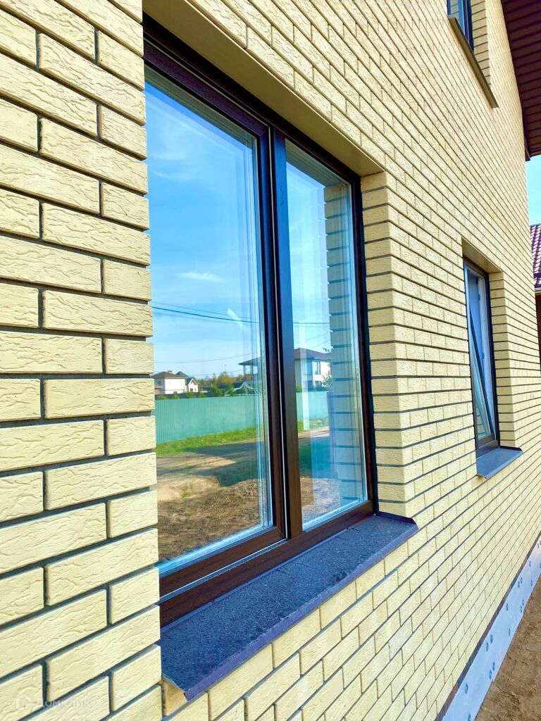 -Окна тройной стеклопакет, толщина профиля 72мм., с ламинацией под цвет крыши.