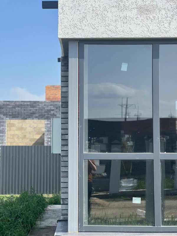 Дом расположен в закрытом коттеджном поселке, который находится в черте города. Современный, индустриальный.