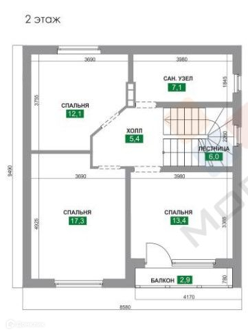 Общая площадь 127.5 м2