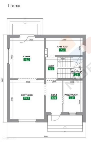 Площадь кухни 16 м2