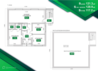 Общая площадь: 121.3 м2