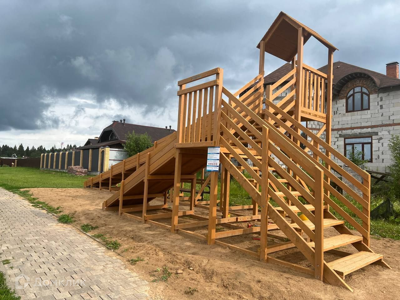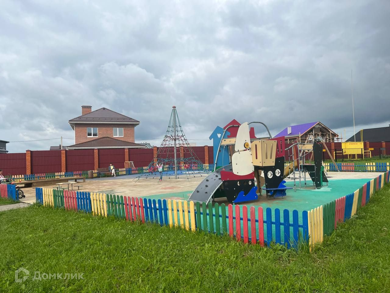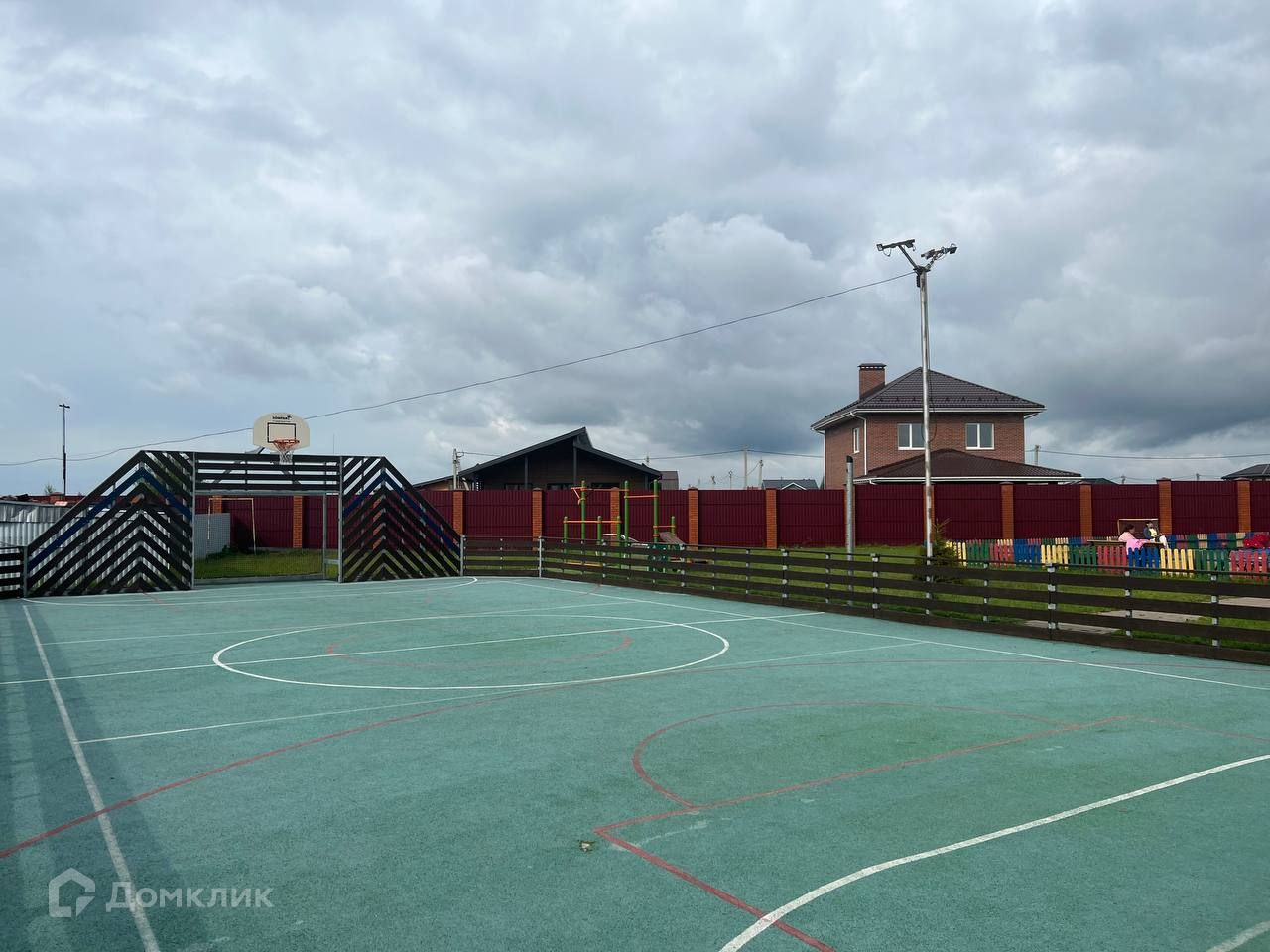 На территории детская и спортивная площадки, пруд с зоной отдыха.