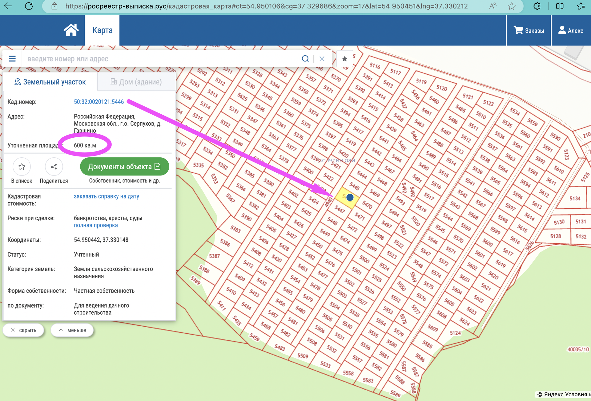 Площадь участка 6 сот.