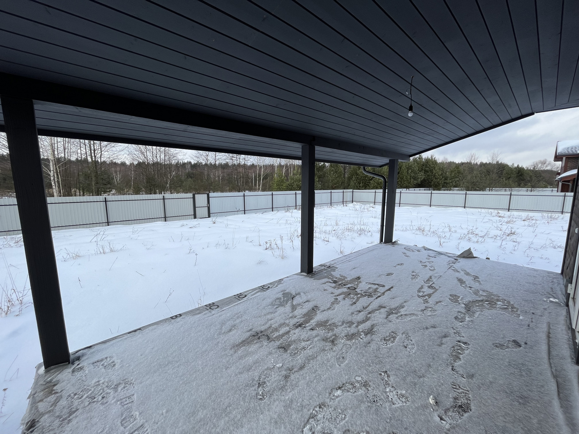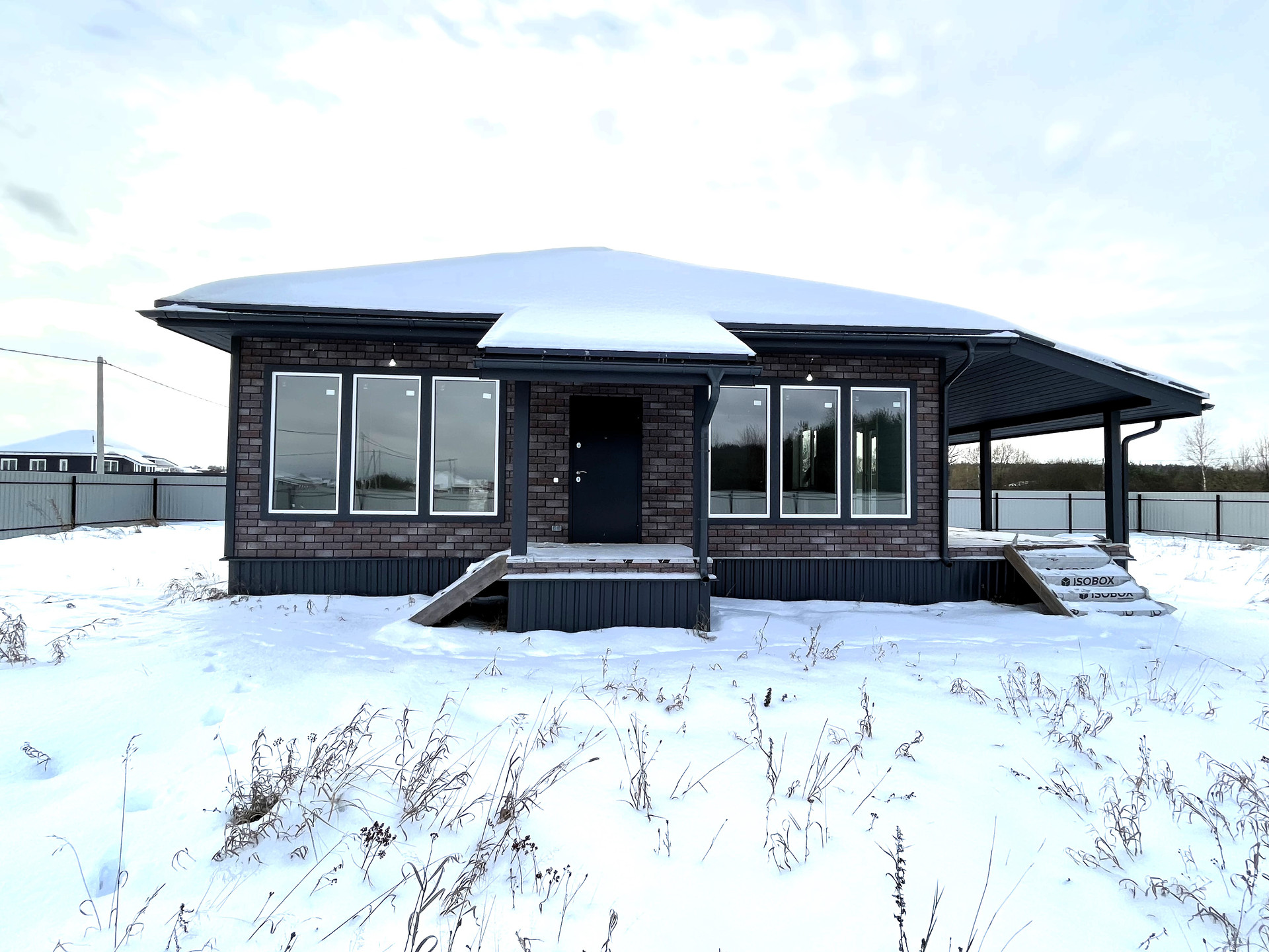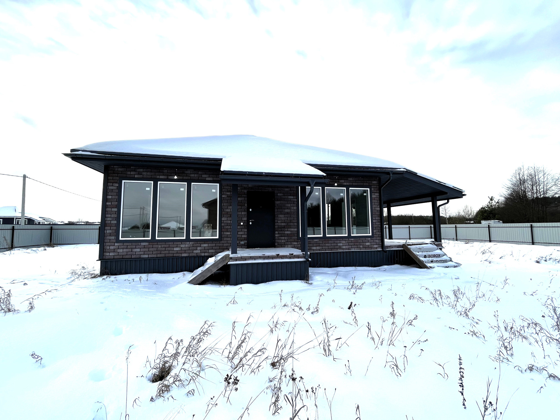 B домe  удобная планировка - три изолированные спальни, просторная кухня-гостиная, санузел и небольшая гардеробная комната . Все необходимые коммуникации заведены - свет 15 квт, отопление от электрического котла, канализация септик, вода из колодца.Участок правильной формы! Огорожен забором из проф. листа. Сделаны ворота и калитка.