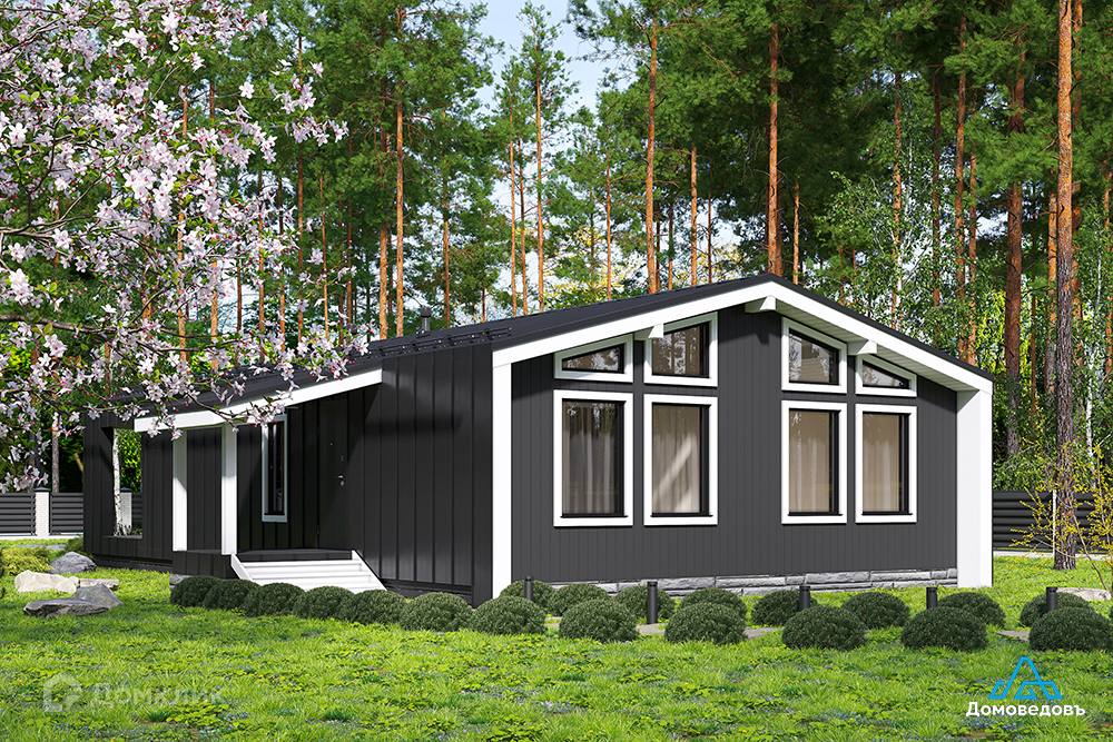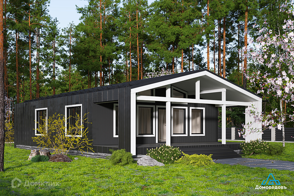 В доме кухня-гостиная площадью 34 кв. м с выходом на террасу 26 кв. м, три комнаты 12 кв. м, 12 кв. м и 14 кв. м, а также санузел, техническое помещение, холл и тамбур.