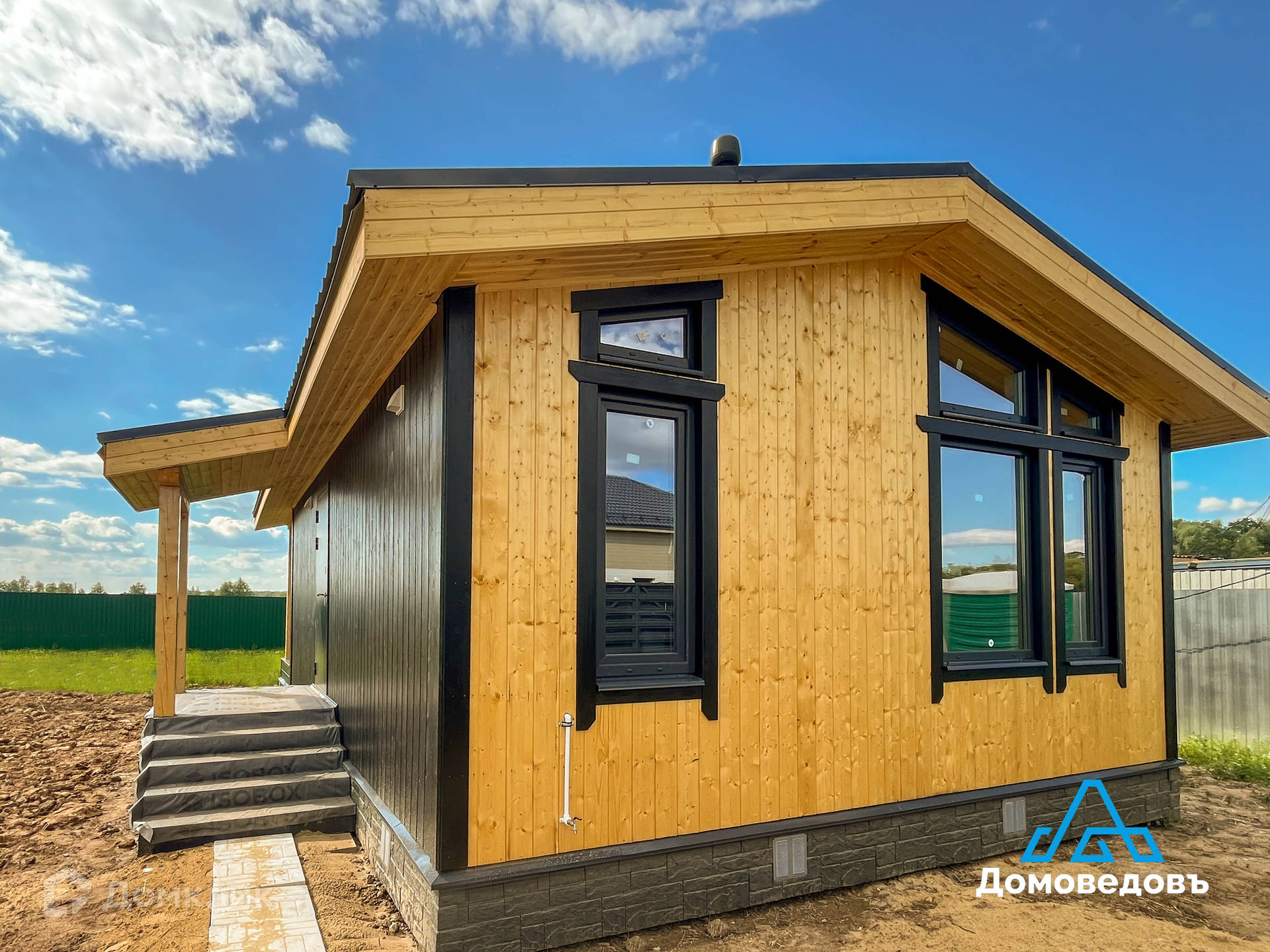 - Стены внутри – евровагонка, снаружи – имитация бруса/фасадная плитка.