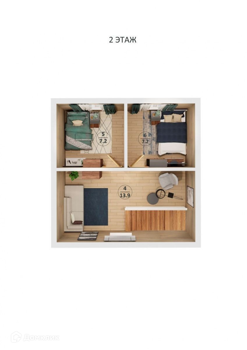 2 этаж: коридор, 2 спальные комнаты.