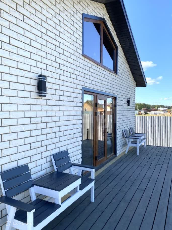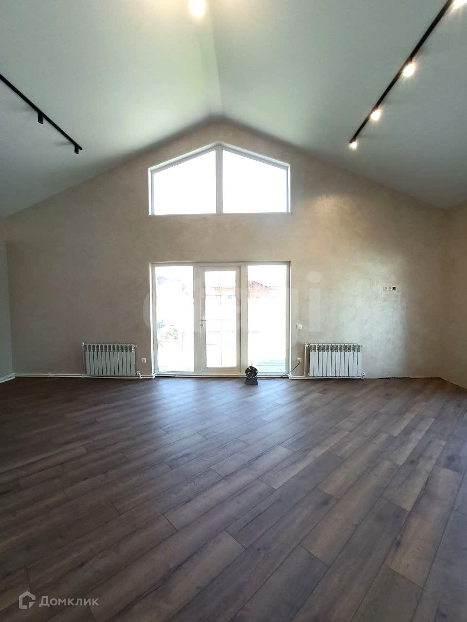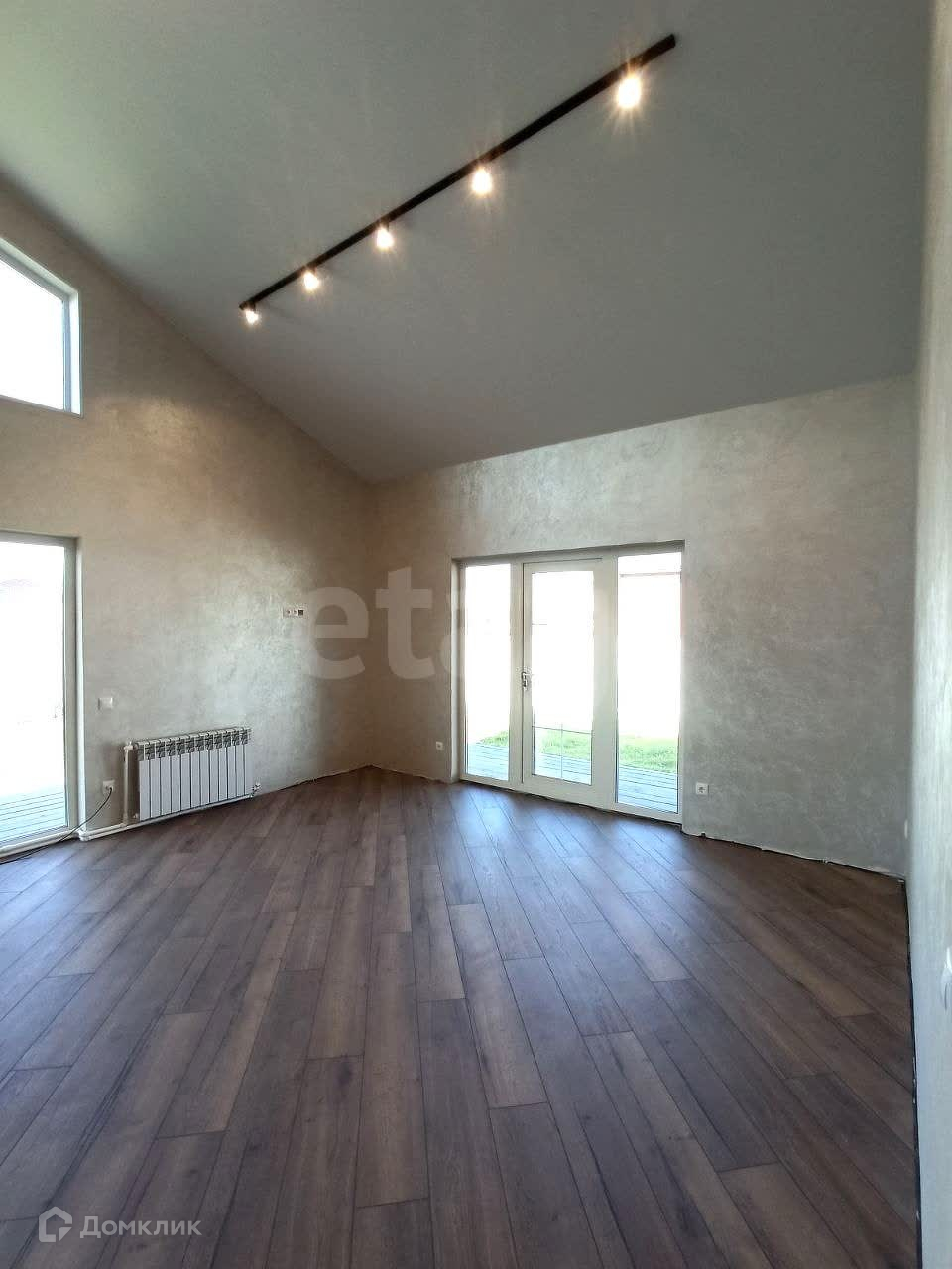 Просторная кухня-гостиная (высота потолков 4,8м) с панорамными окнами и двумя выходами на террасу. Отдельный тёплый вход через прихожую. В доме 3 (три) спальни и просторная ванная комната. Высота потолков 3 метра.