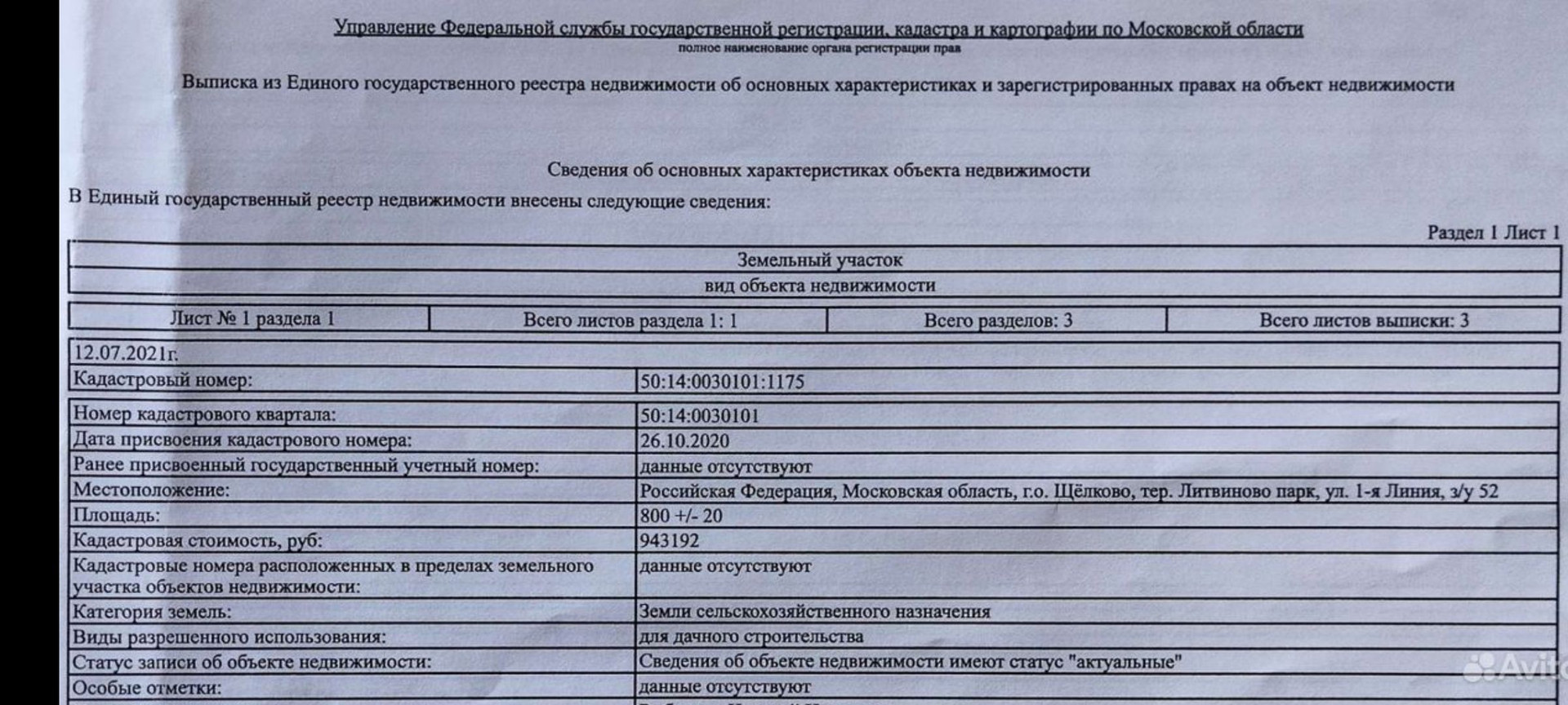 Стоимость недвижимости: