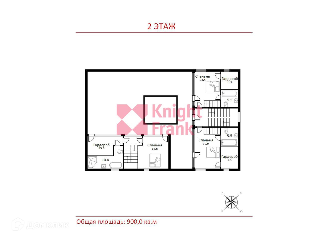 2 этаж: холл, 3 спальни с с/у и гардеробными