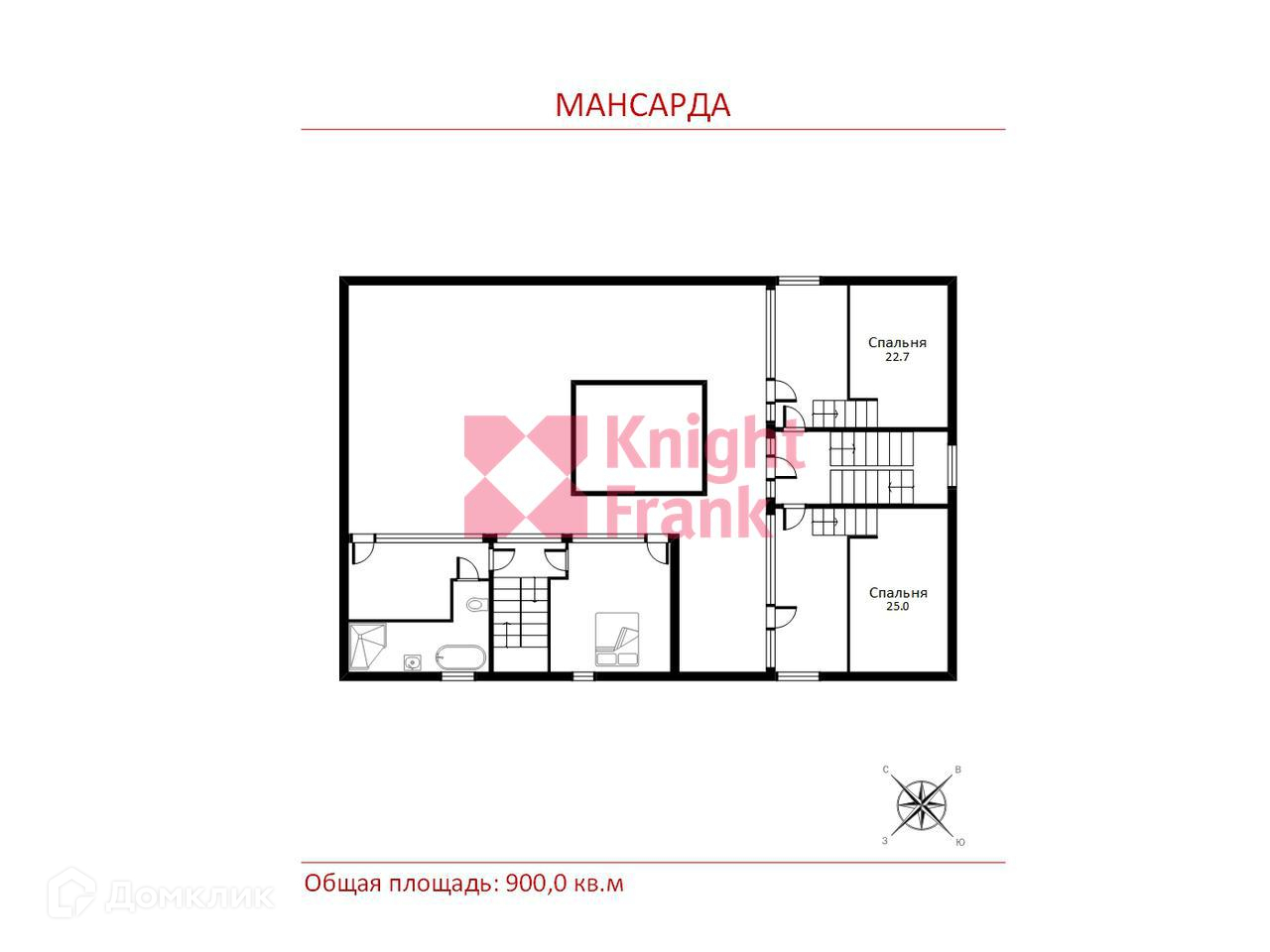 Мансарда: холл, 2 спальни.