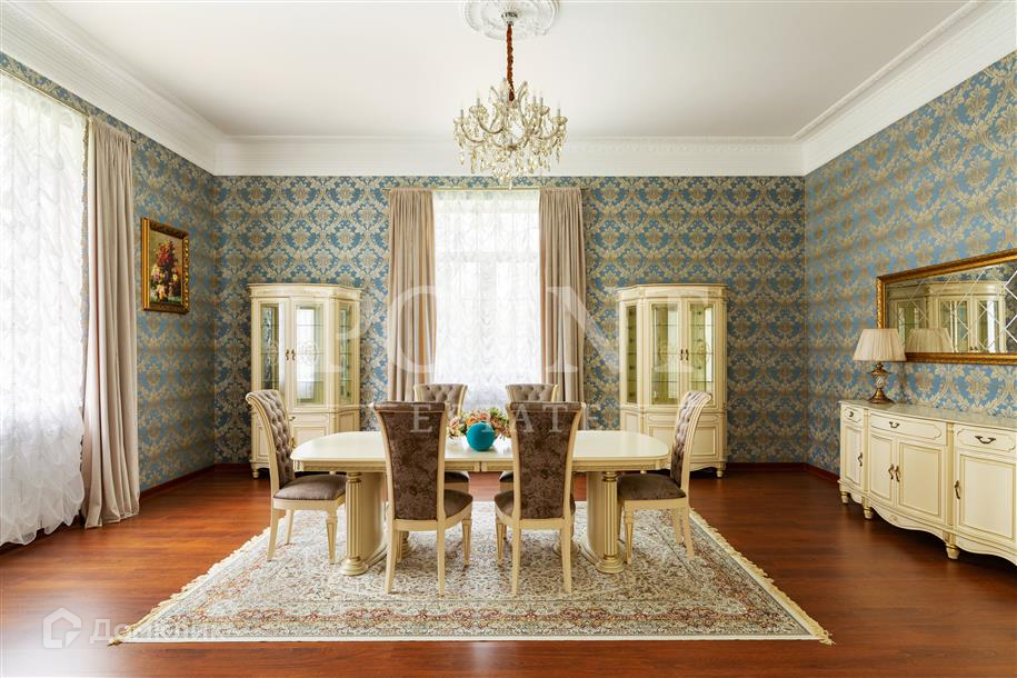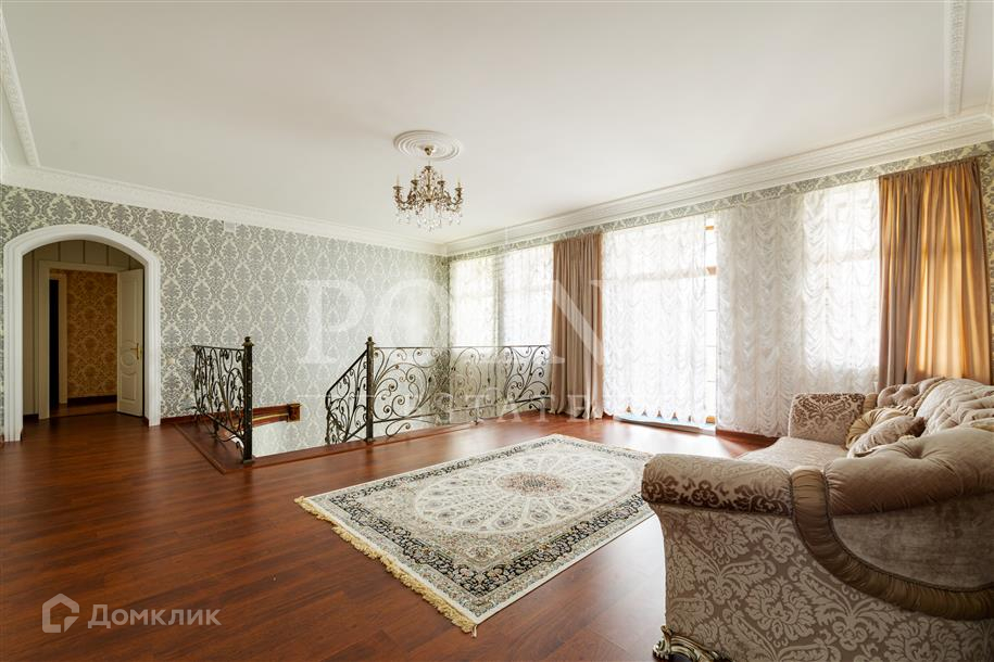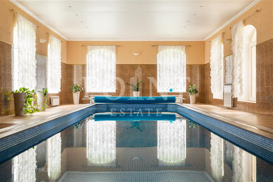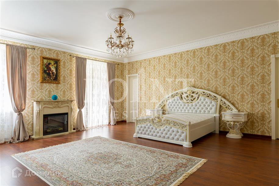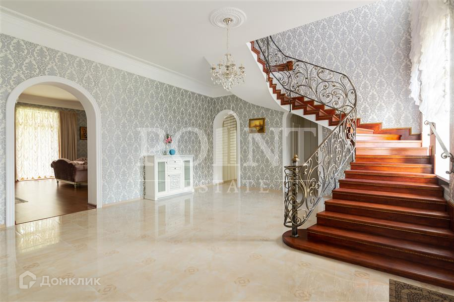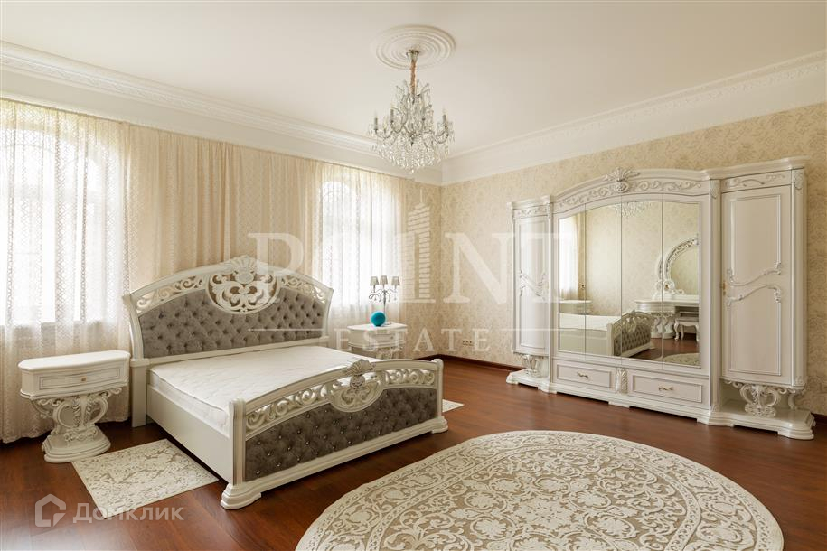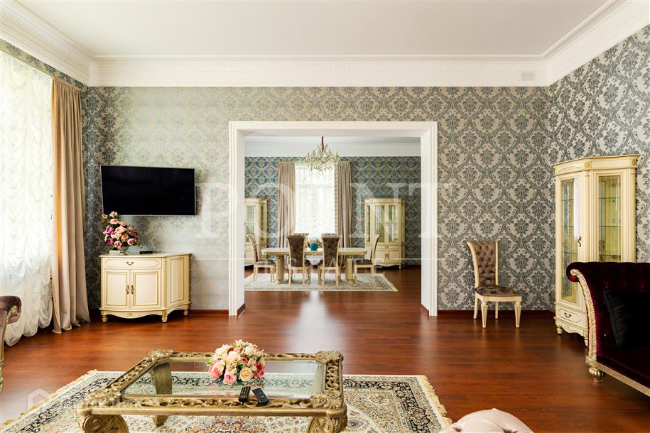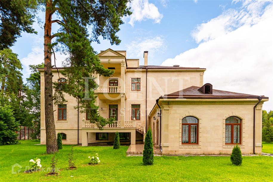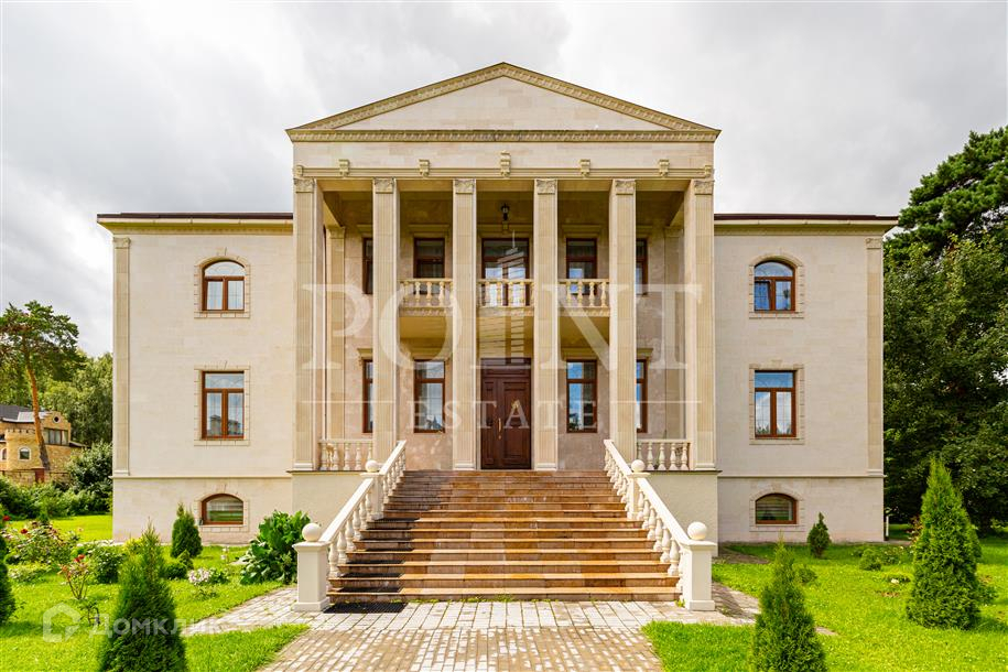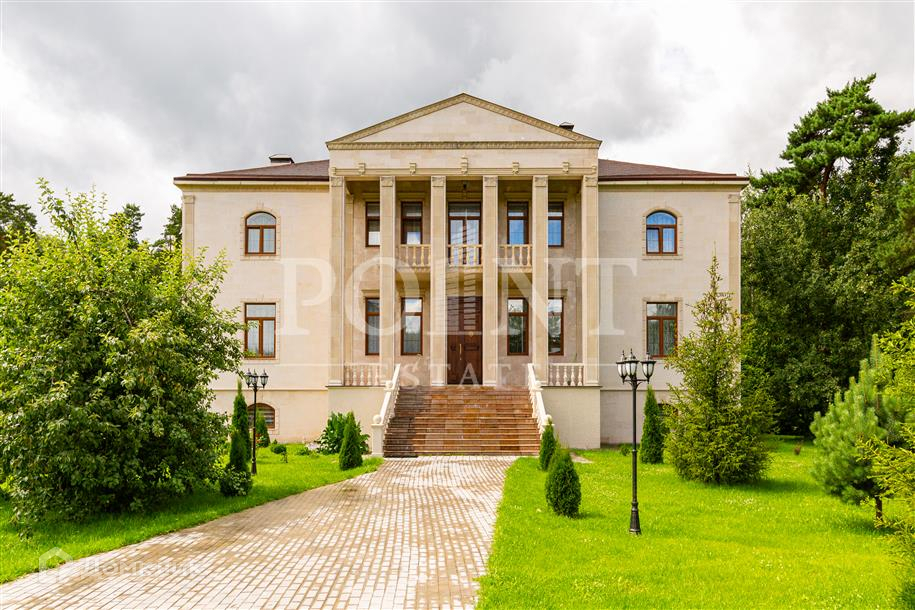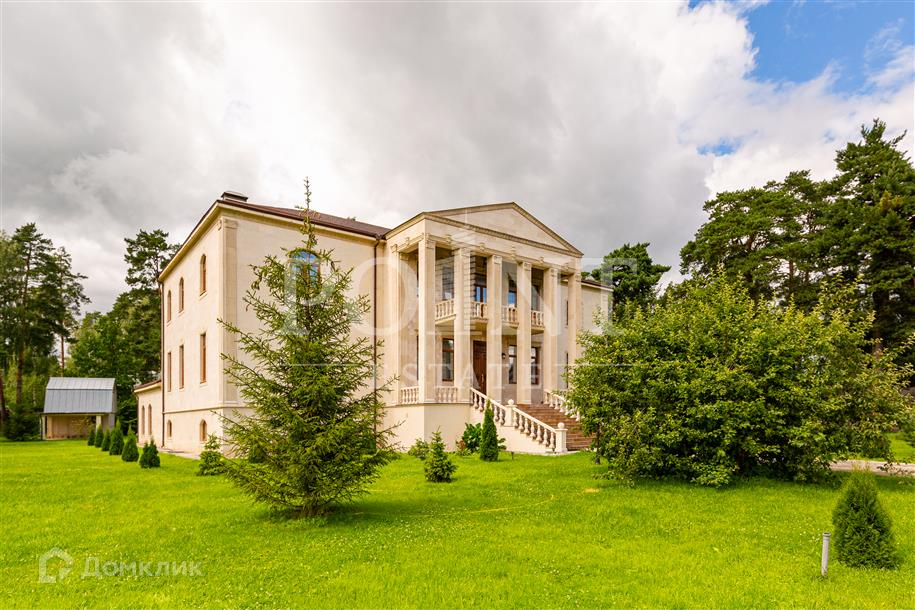 Лот: 26719.   Предлагается великолепный трехуровневый загородный особняк площадью 936 кв.м., построенный в лучших традициях "Неоклассицизма" на просторном участке 47 соток в шаговой доступности от завораживающего соснового бора, в коттеджном поселке "Любушкин Хутор". Функциональная планировка. На цокольном уровне находится функциональная SPA-зона с шикарным бассейном и сауной, а также тренажерный зал, бильярдная, винная комната, котельная, постирочная и два технических помещения. Первый уровень комфортно вместил гостиную с каминным залом, кухню, столовую, кабинет, спальню с гардеробной и санузлом, гардеробную, большой холл, прихожую и террасу. А второй уровень занимают четыре спальни с индивидуальными гардеробными и санузлами, детская игровая, два балкона. На придомовой территории построен отдельностоящий гараж на два автомобиля с квартирой для персонала на втором этаже.
