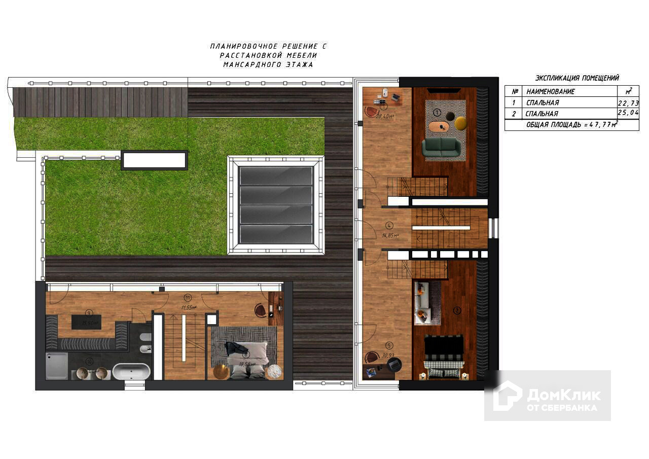 Мансарда: Две спальни со своими гардеробными и с/у.Номер объекта: #150/549662/10278