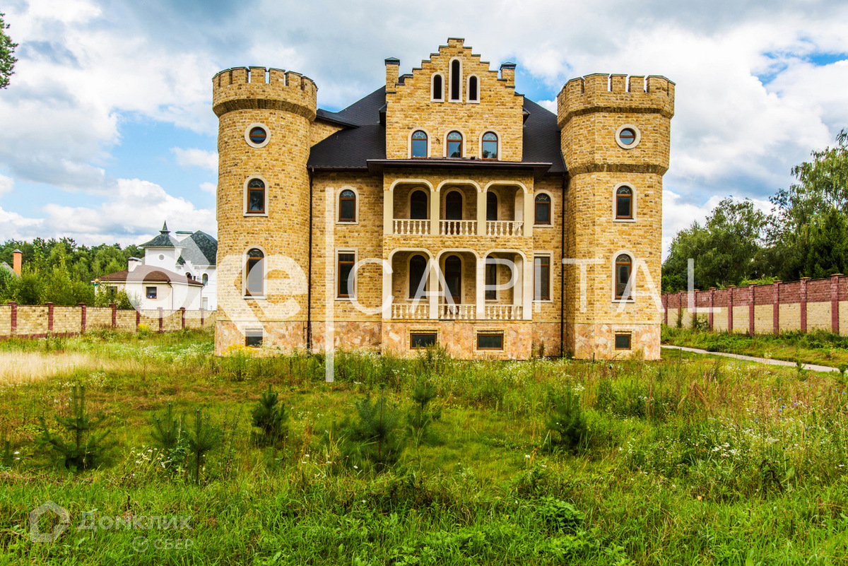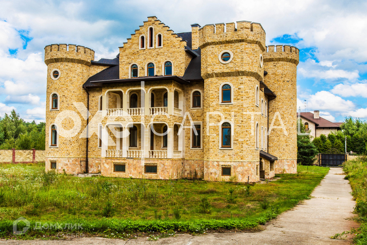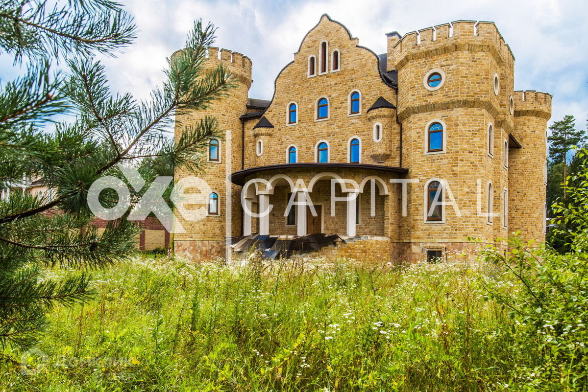 Лот №d3468  Дом под чистовую отделку 1 200 кв.м в охраняемом поселке "Любушкин Хутор". Великолепный замок в романском стиле, напоминает эпоху рыцарей! Лестница закручена по часовой стрелке, как в средневековых замках (в лестничном пролете спроектирован лифт). С балконов замка открывается великолепный вид. Участок  59 соток, вокруг участка лесные деревья. ИЖС. Дом органично вписан в природный ландшафт. В таком же стиле построен гостевой дом с гаражом на четыре а/м, площадью  522 кв.м.