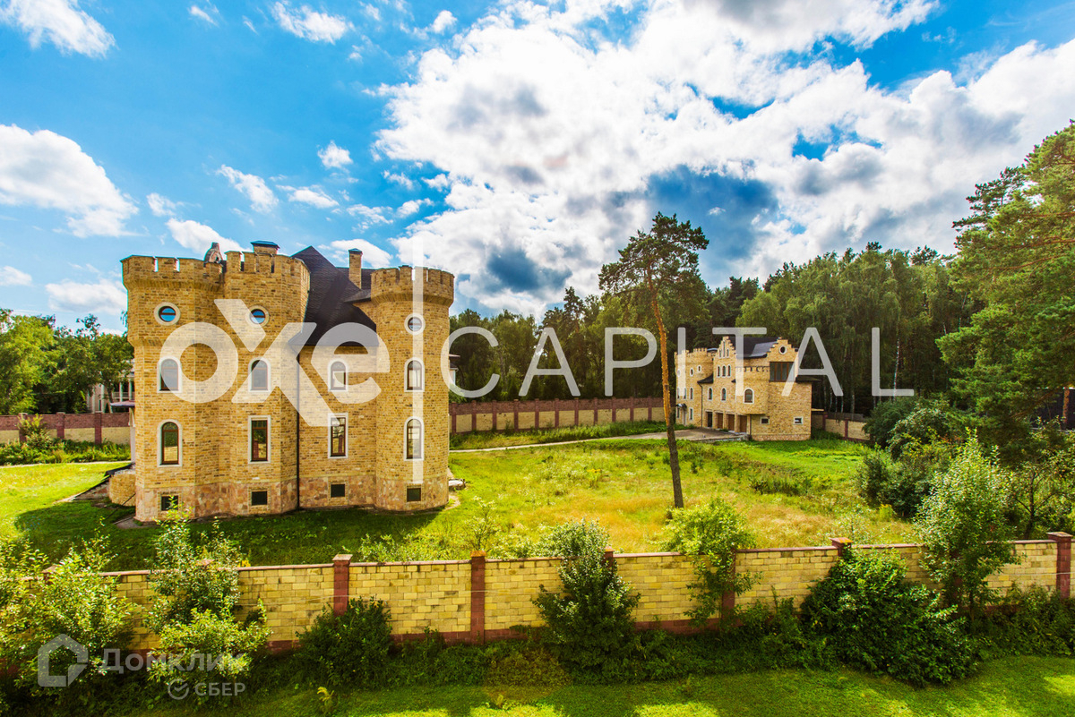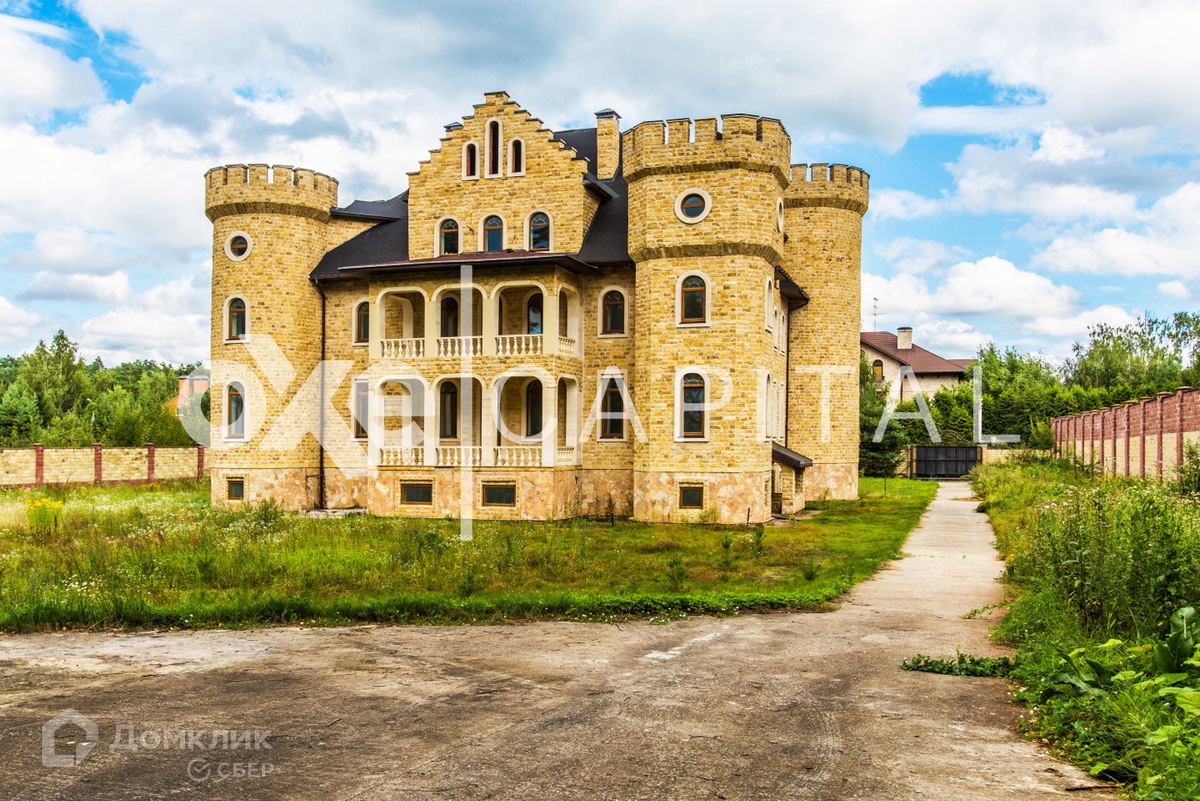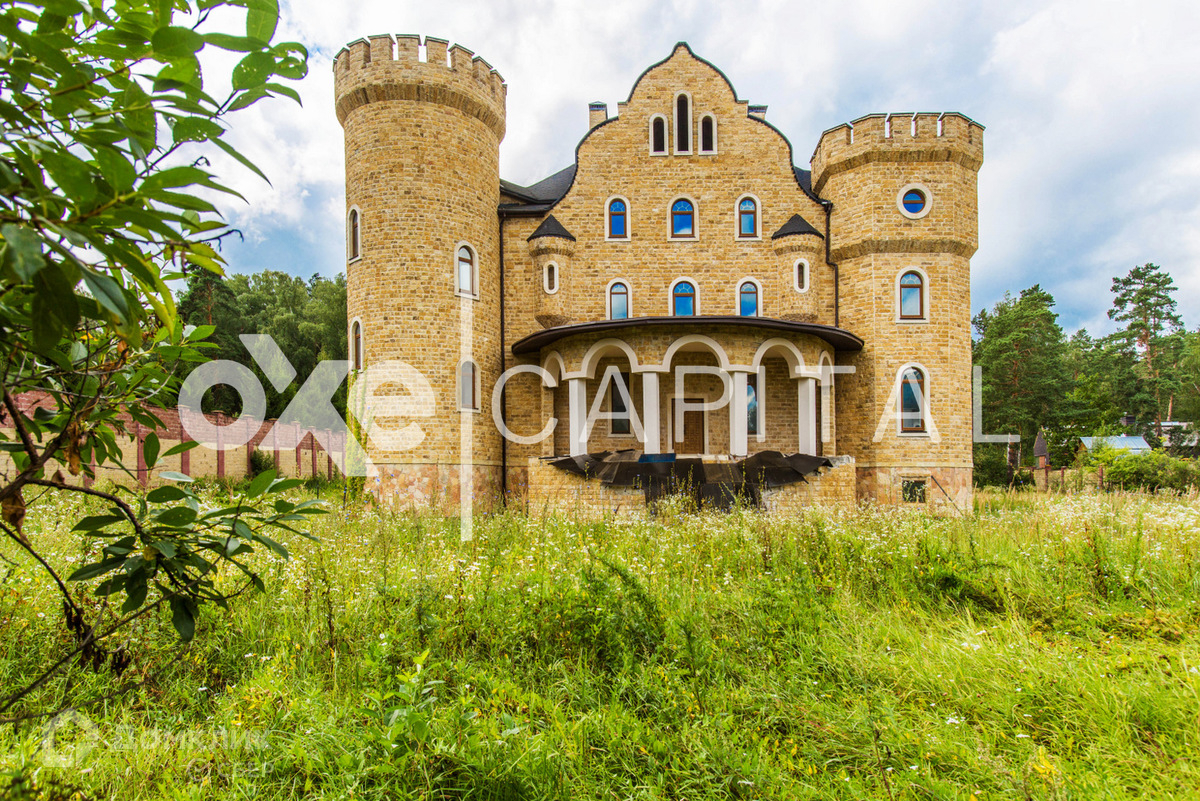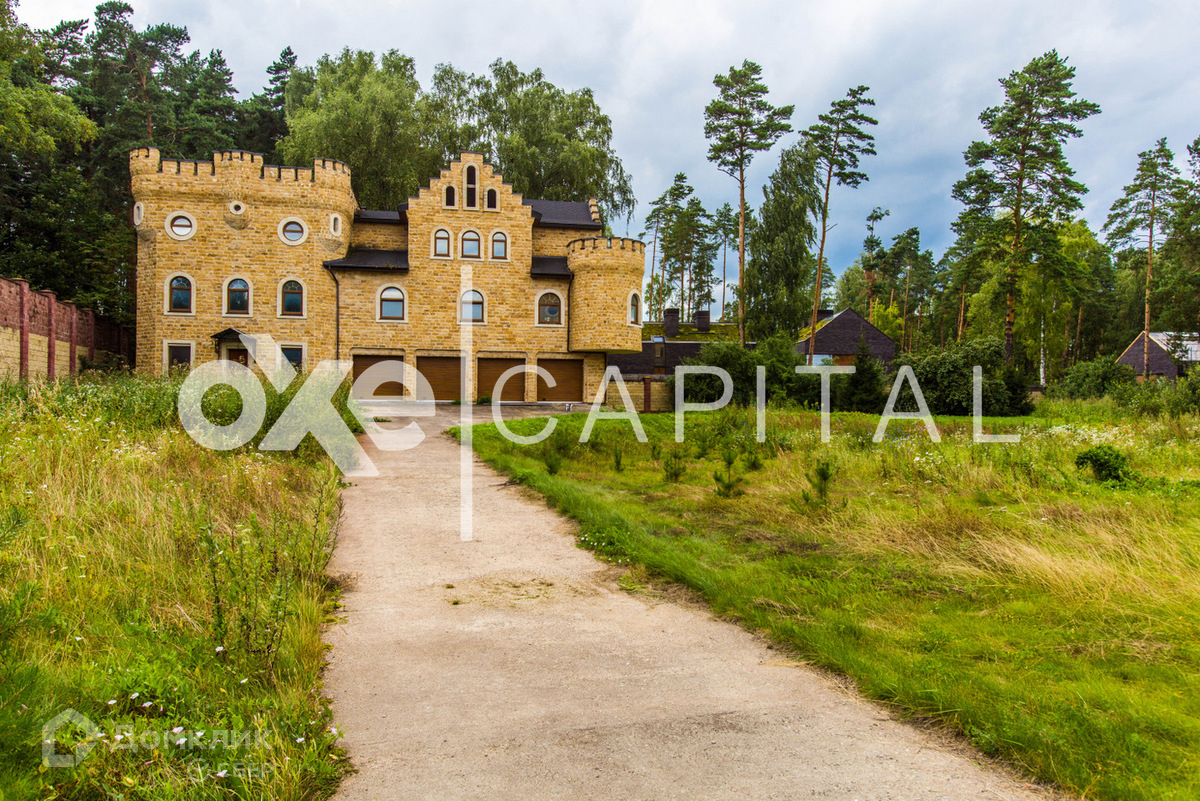 Лот №d3468  Дом под чистовую отделку 1 200 кв.м в охраняемом поселке "Любушкин Хутор". Великолепный замок в романском стиле, напоминает эпоху рыцарей! Лестница закручена по часовой стрелке, как в средневековых замках (в лестничном пролете спроектирован лифт). С балконов замка открывается великолепный вид. Участок  59 соток, вокруг участка лесные деревья. ИЖС. Дом органично вписан в природный ландшафт. В таком же стиле построен гостевой дом с гаражом на четыре а/м, площадью  522 кв.м.