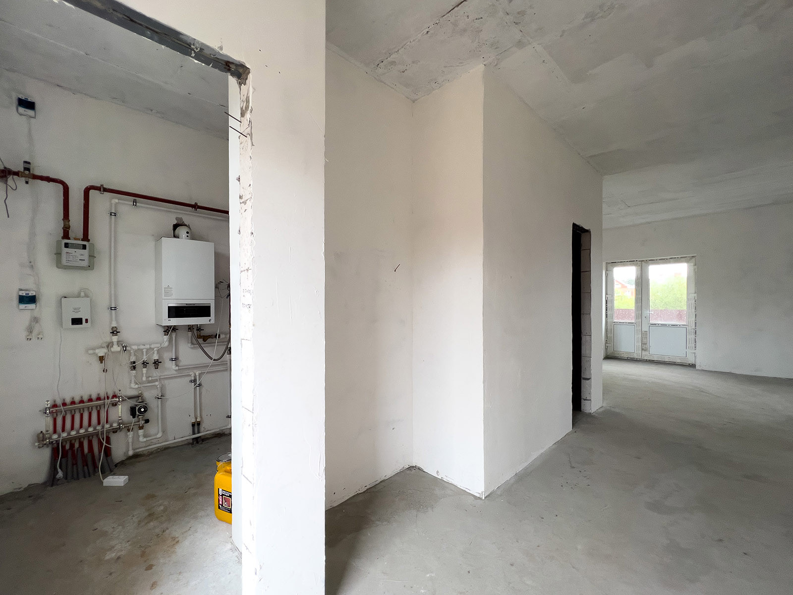 1 этаж: прихожая гардеробной, кухня-гостиная, гостевая спальня, с/у, бойлерная;