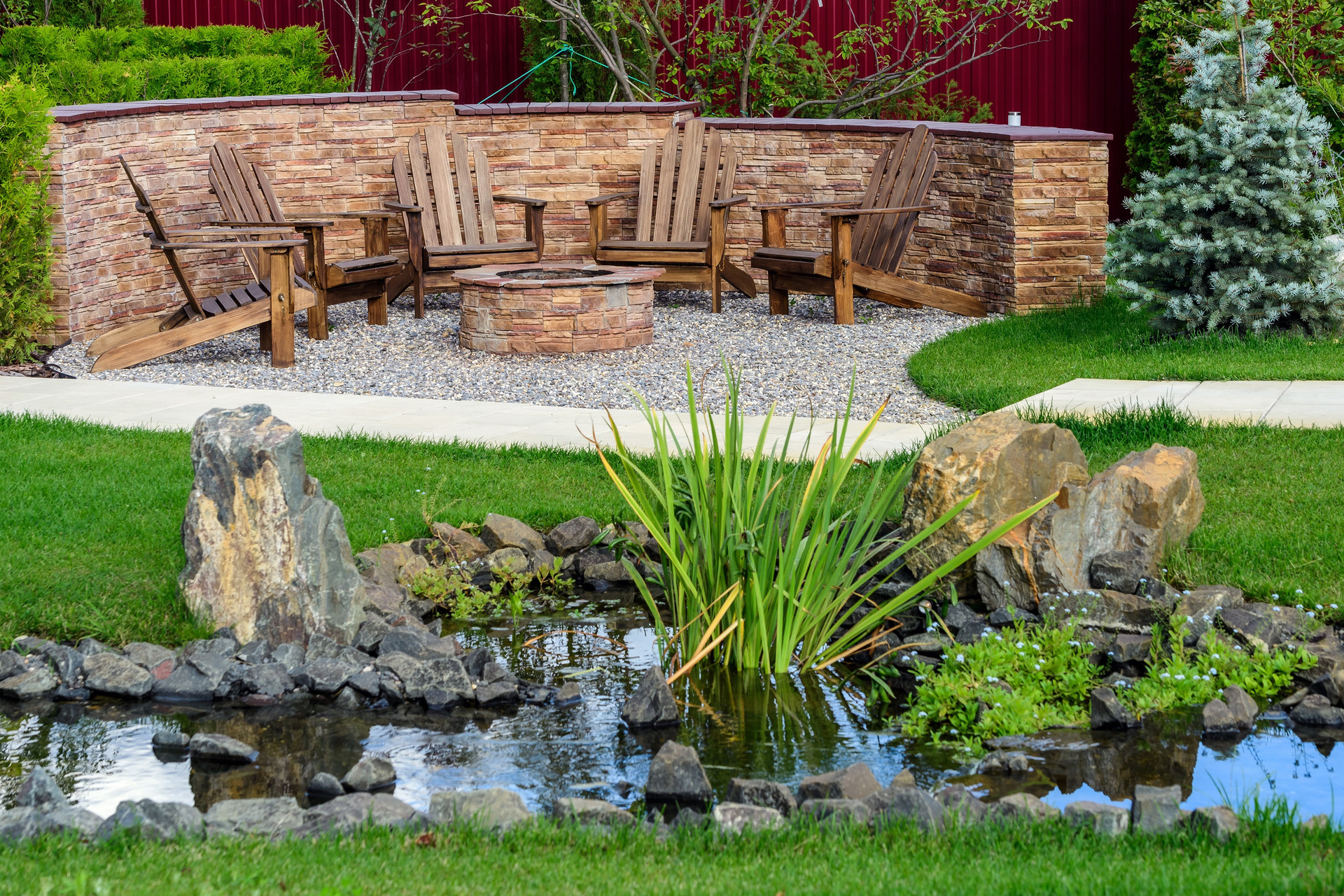 На 24 сотке высажены хвойные и плодовые деревья, кустарники, сформированы красивые клумбы , действующий водопад с прудом. Дополнительно имеется открытый бассейн с круглогодичным подогревом воды и персональная детская площадка.