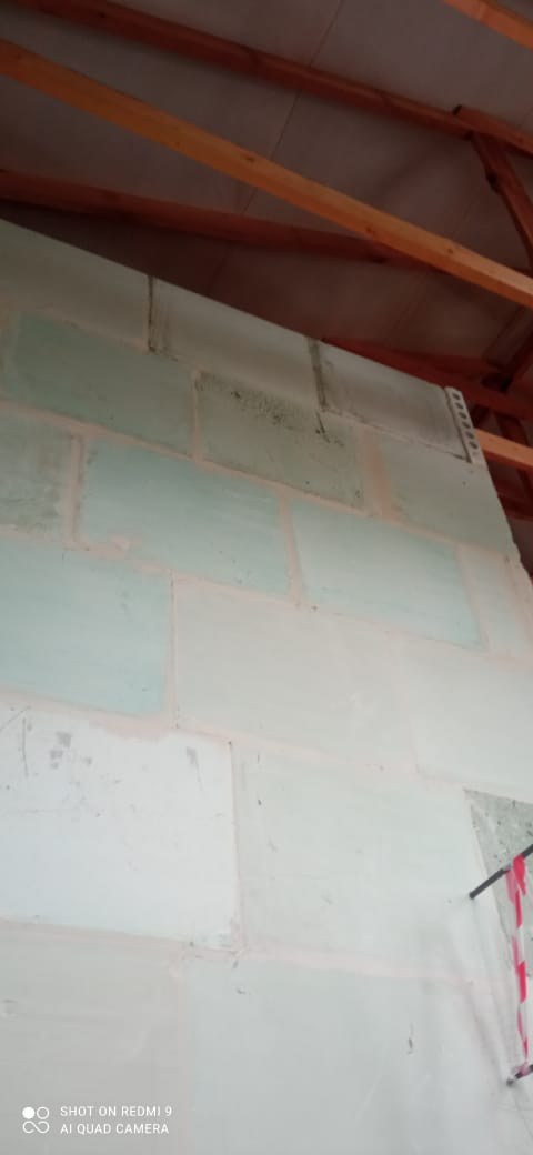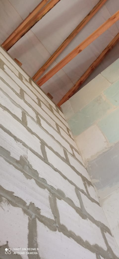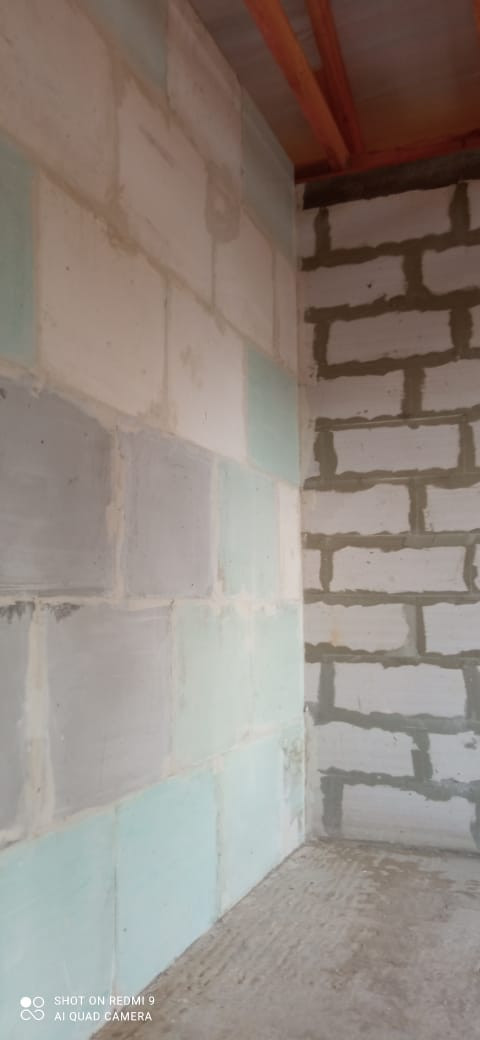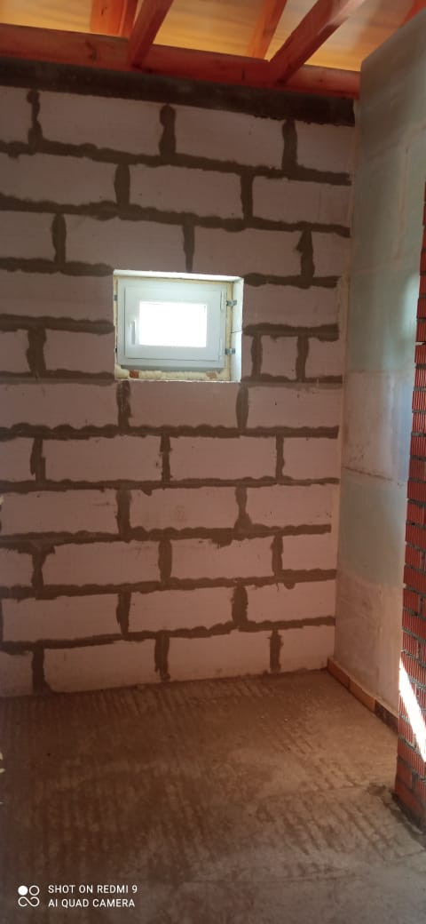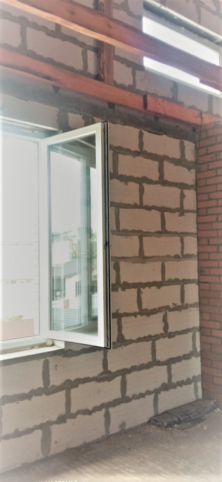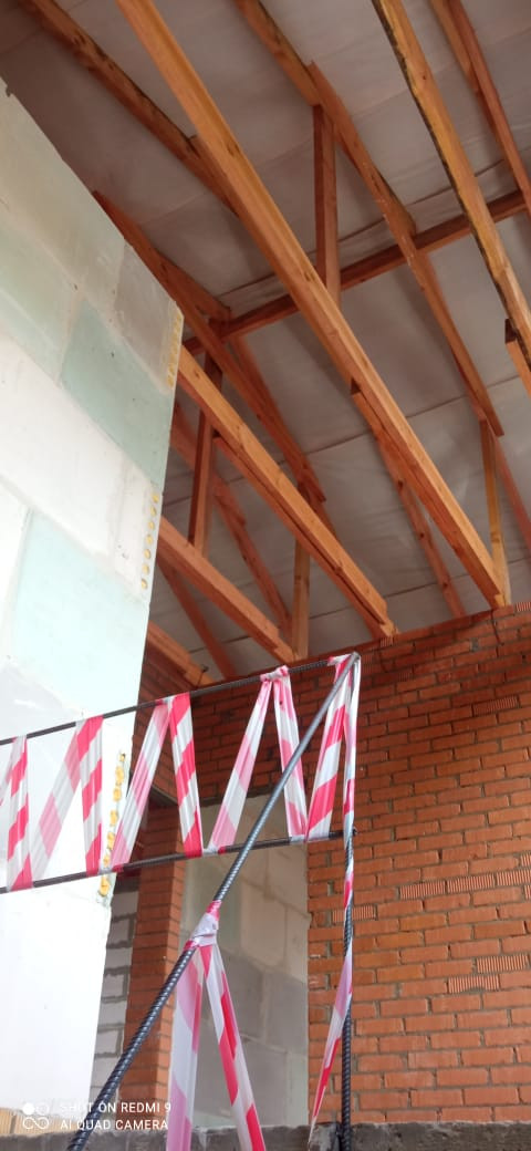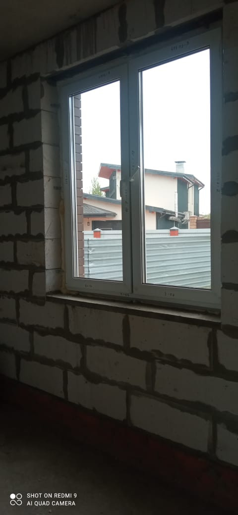 Фундамент: армированная единая плита 400 мм, стены: облицовочный кирпич, утеплитель, пеноблоки, крыша профлист, окна двухкамерный стеклопакет рехау 70.