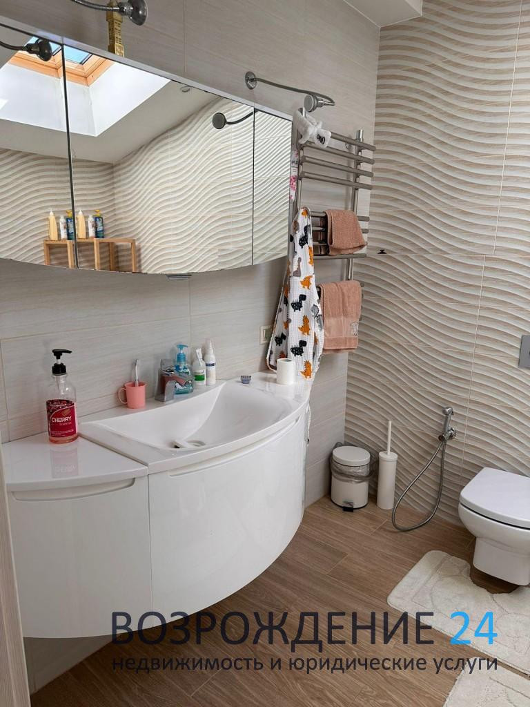 - Дом построен в 2015 году и находится в центре посёлка вдали от шума трассы. Очень тёплый зимой и прохладный в жару. Все коммуникации центральные, в доме газ, электричество (15 кВт), вода, интернет и ТВ, возможна прописка. На первом этаже по всему полу проложен теплый пол, находится холл, туалет, постирочная, бойлерная и кухня-гостиная в одном пространстве. На втором этаже: холл, 3 спальни, гардеробная, две ванные комнаты. По вашему желанию оставим всю бытовую технику и мебель. Участок ровный, с ухоженным газоном и цветочными клумбами, стоит бытовка и есть детская горка с качелями и песочницей, высажены туи, ели и плодовые деревья (яблони, черешни и груши). Стоянка на 2 машины с подъемными воротами.