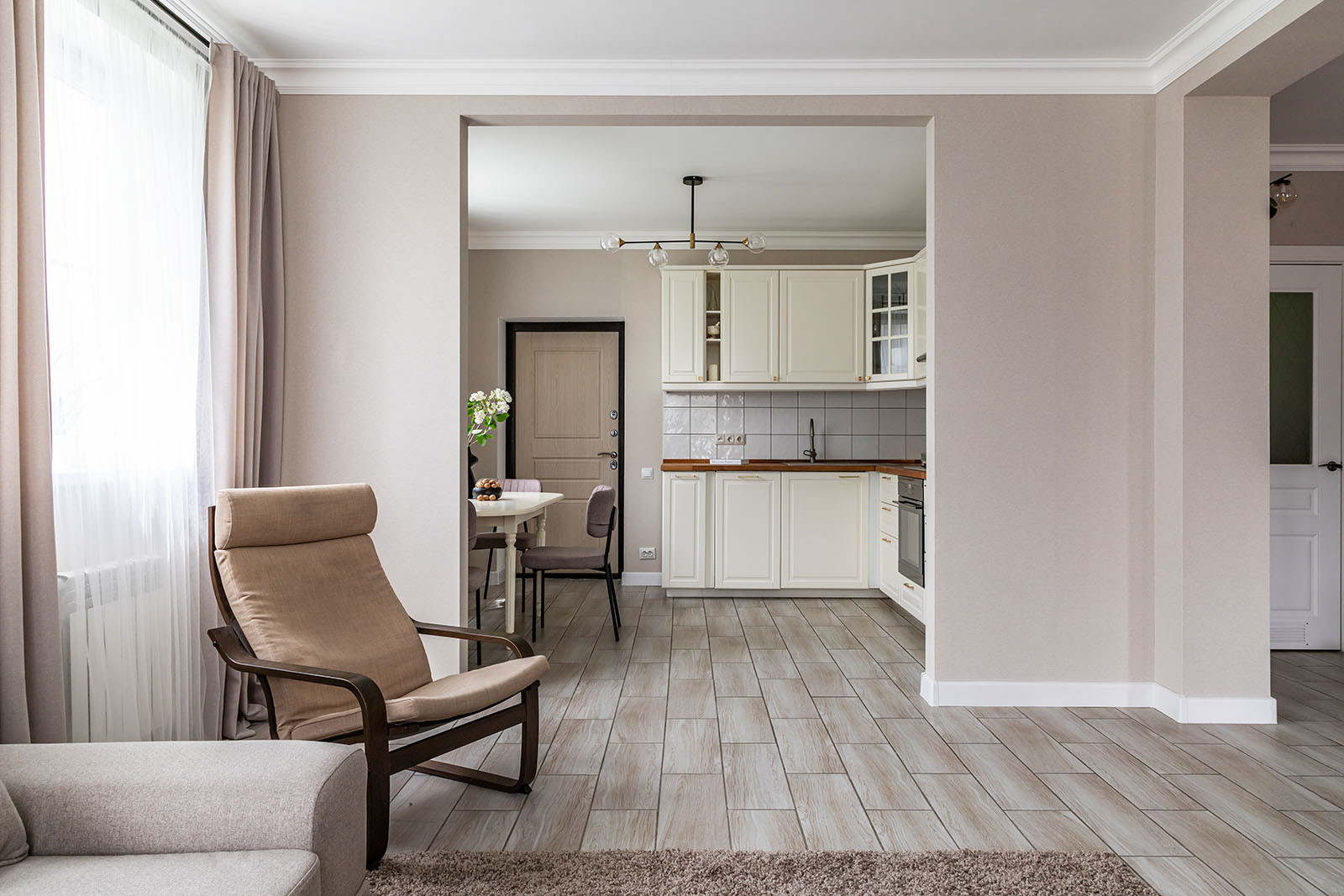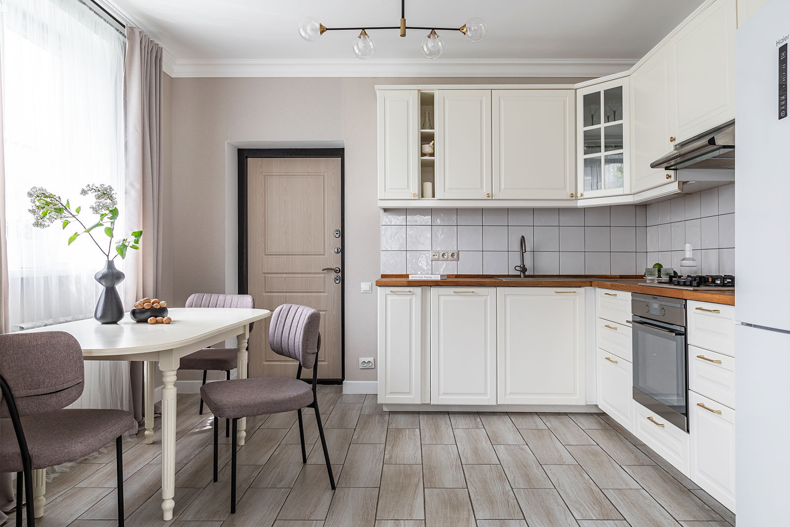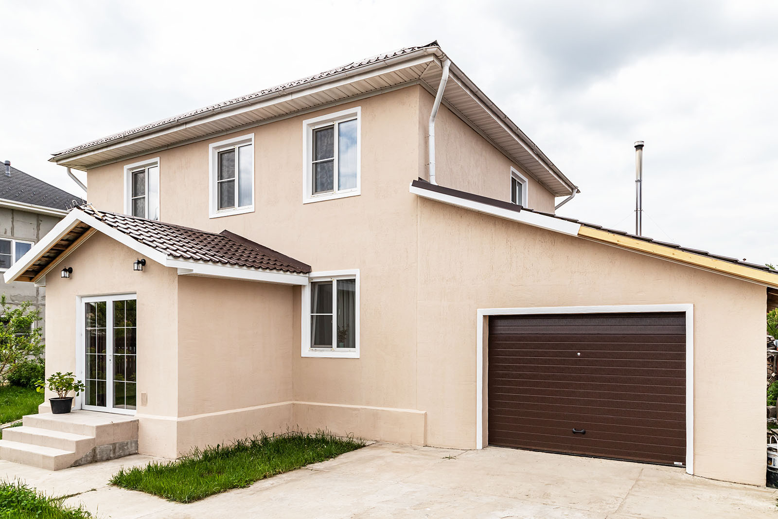 В доме на первом этаже просторная кухня-гостиная, с/у раздельный, спальня, гараж и терраса. На втором этаже 3 спальни, гардероб и с/у.